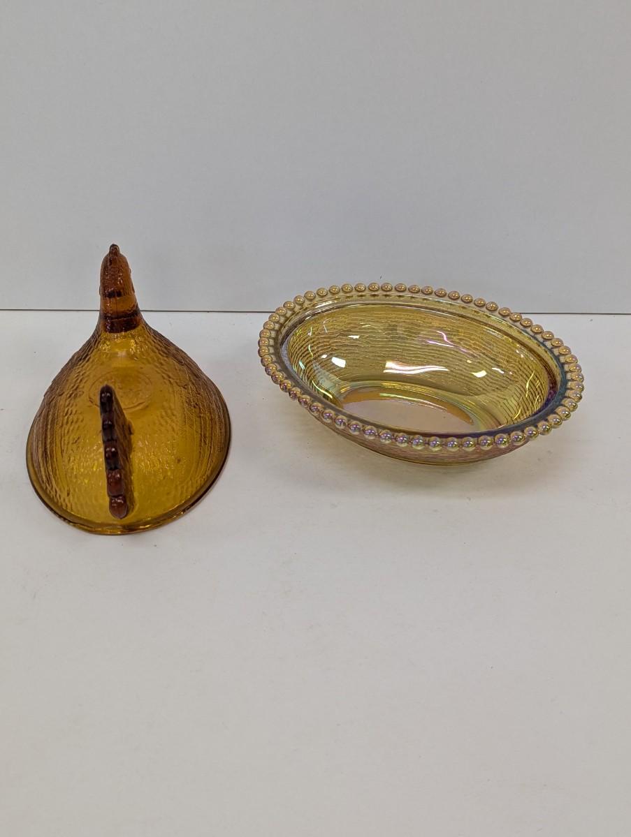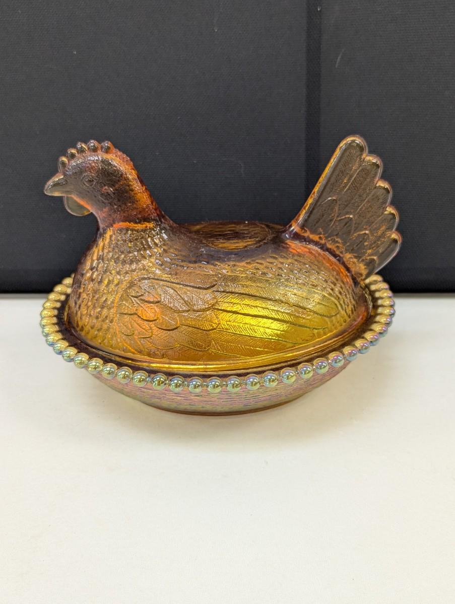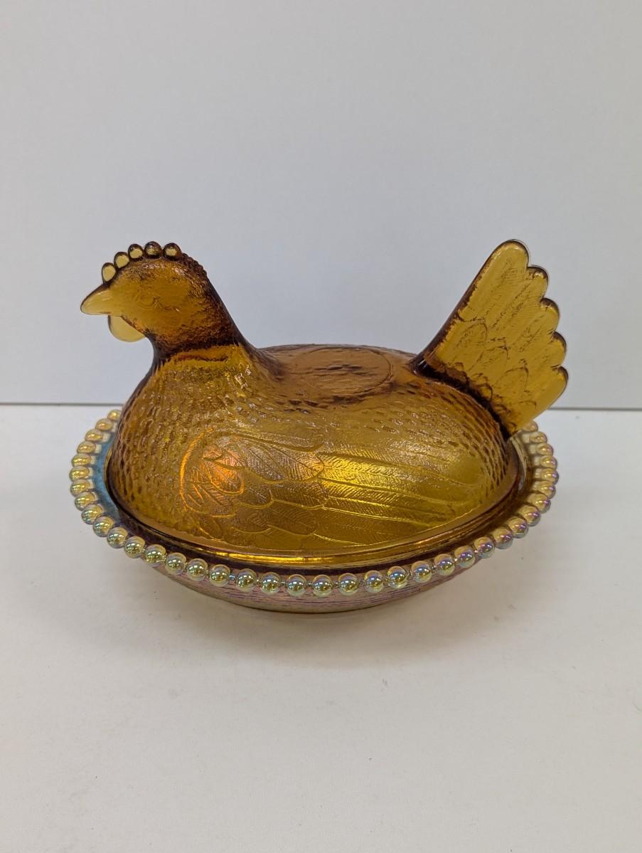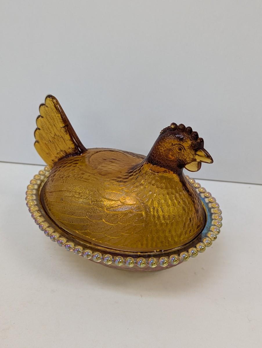 Vintage Amber Indiana Glass Covered Chicken Hen On Nest