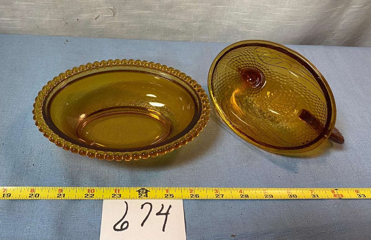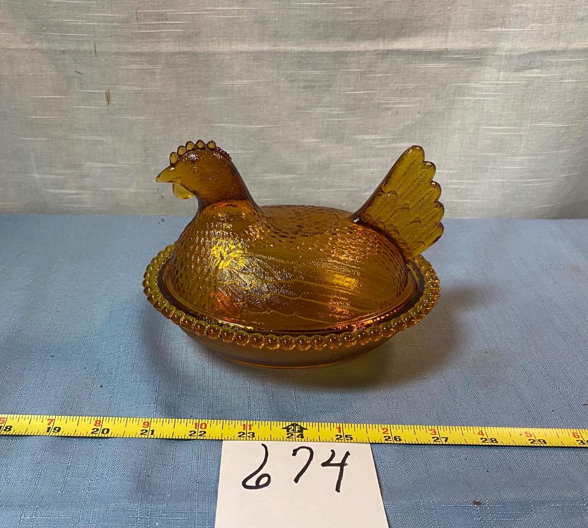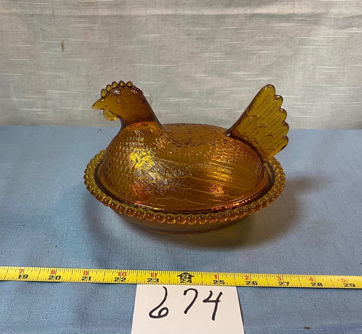 Vintage Amber Indiana Hen on Nest