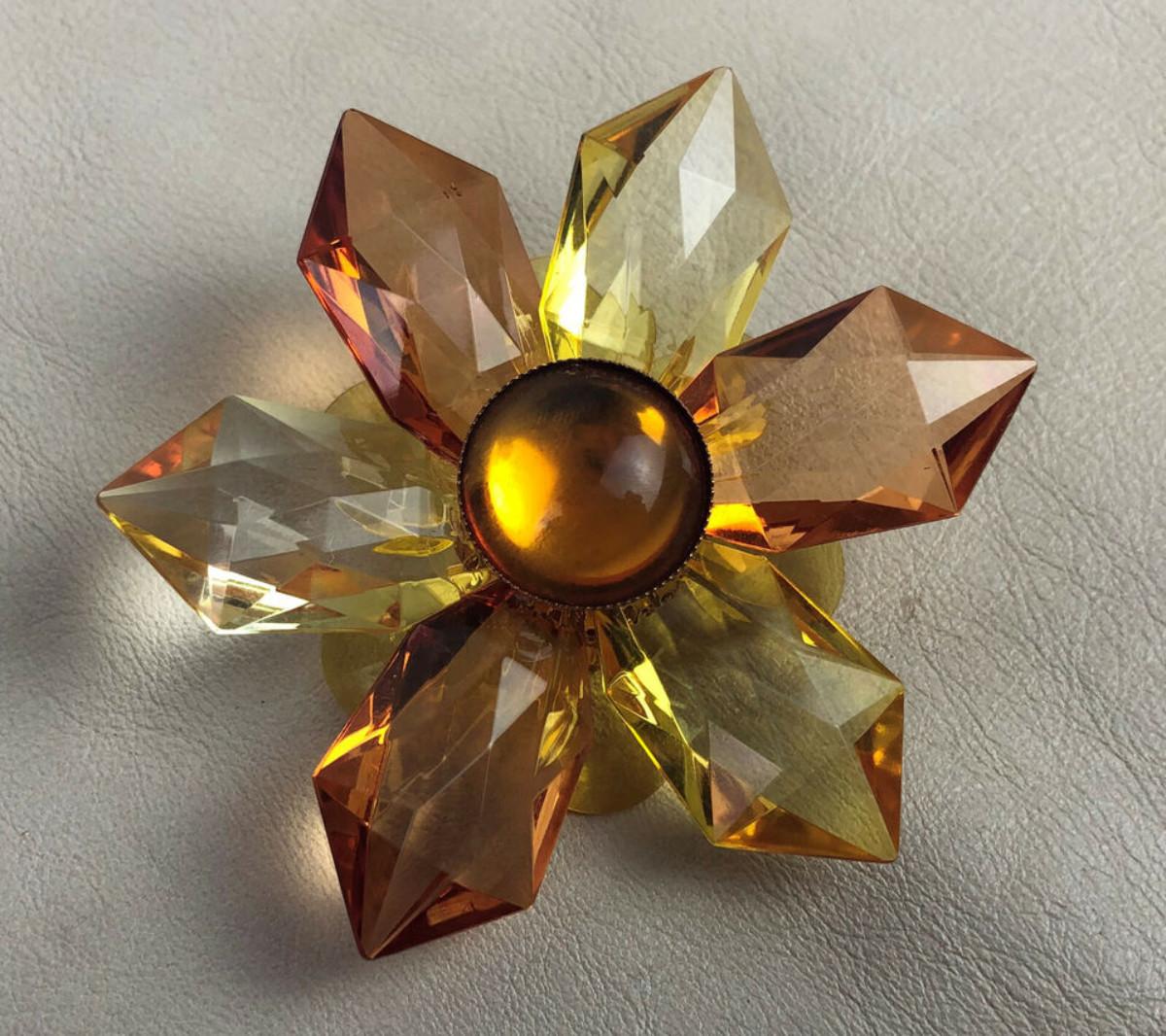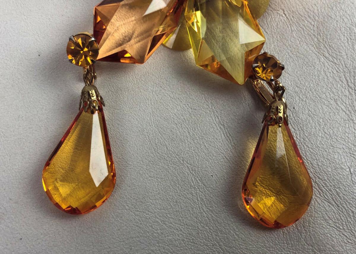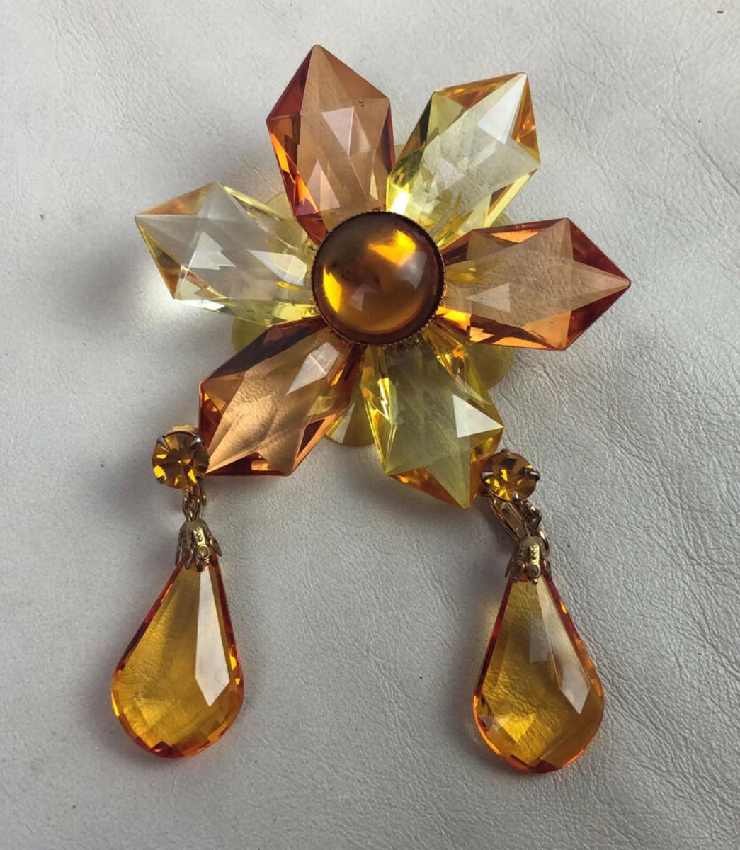 vintage AMBER LUCITE STAR BROOCH & DANGLE EARRINGS