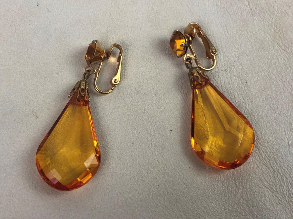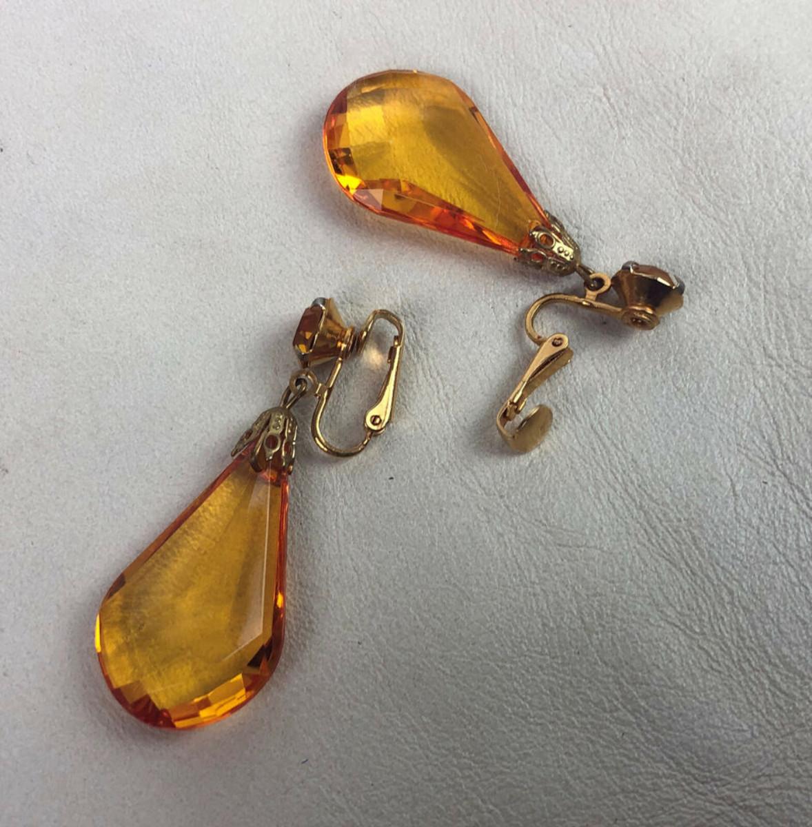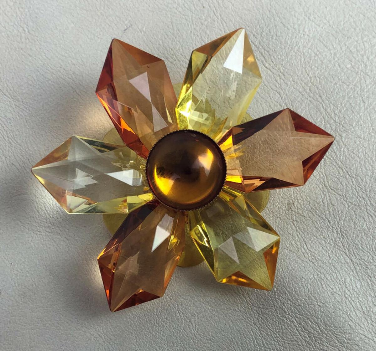 vintage AMBER LUCITE STAR BROOCH & DANGLE EARRINGS