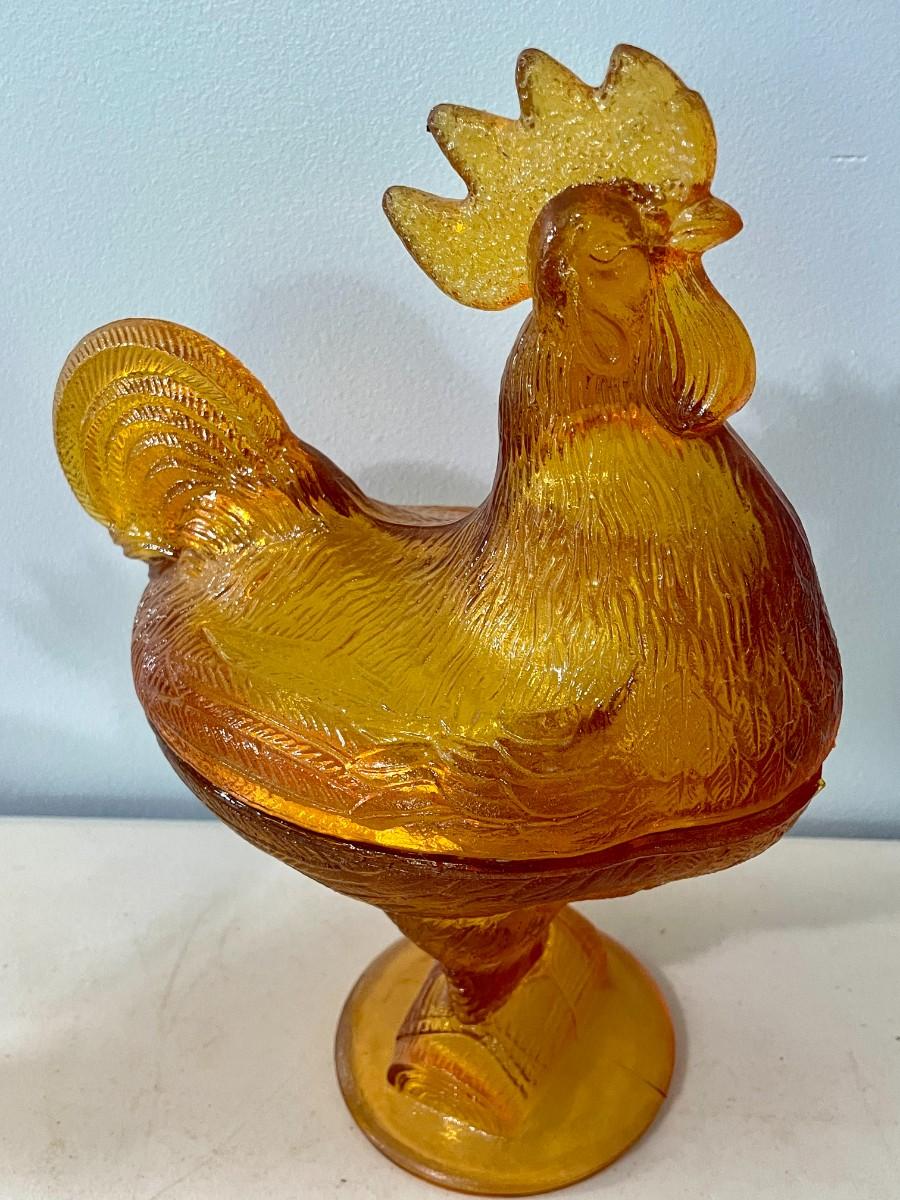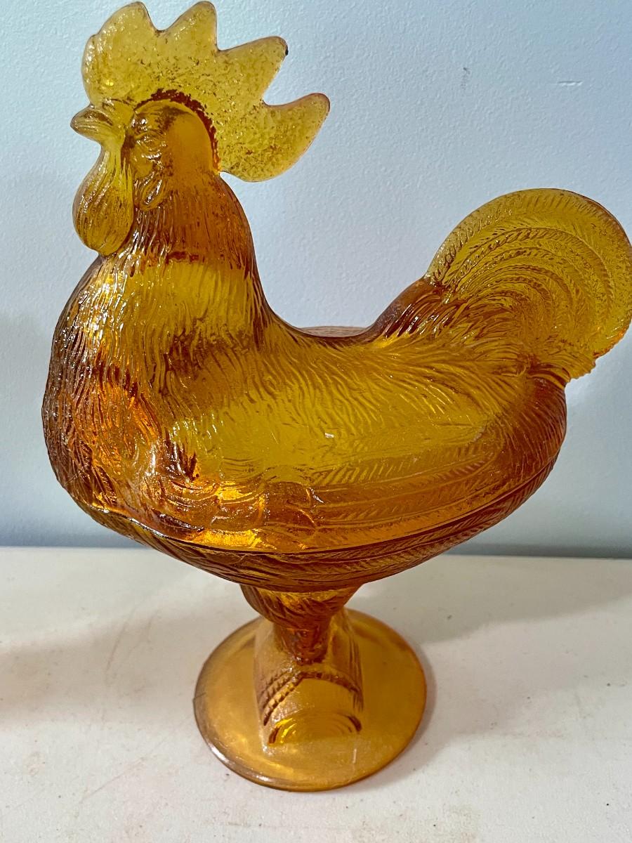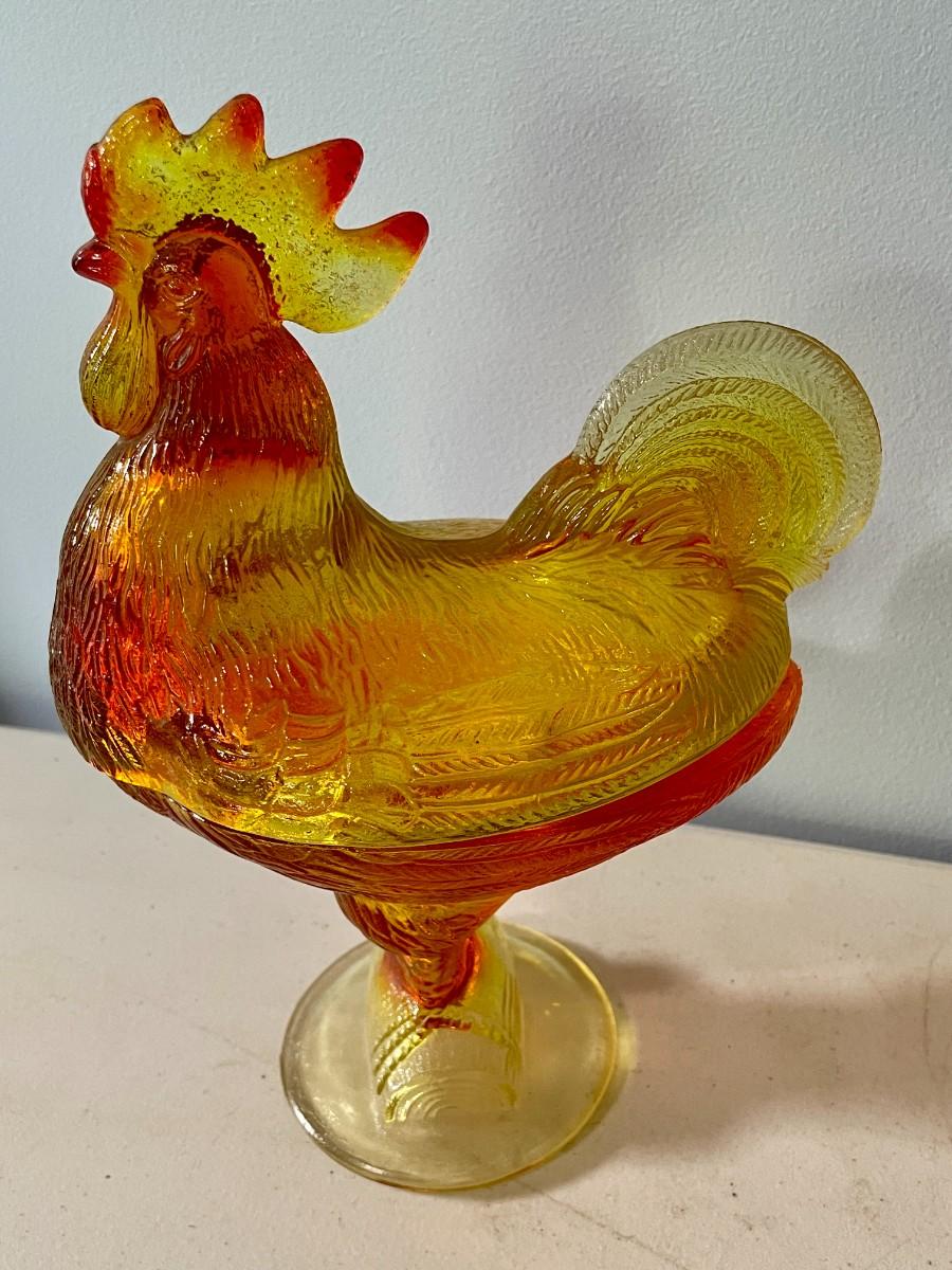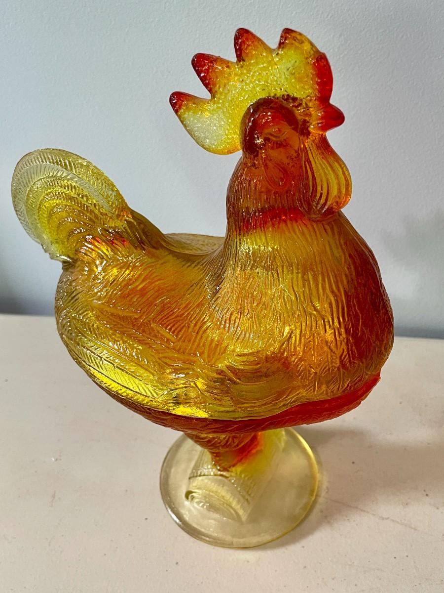 Vintage Amberina & Amber glass rooster candy/nut dishes
