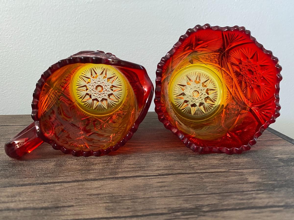 Vintage Amberina Red Orange Yellow Flame Depression Glass Cream and Sugar Set