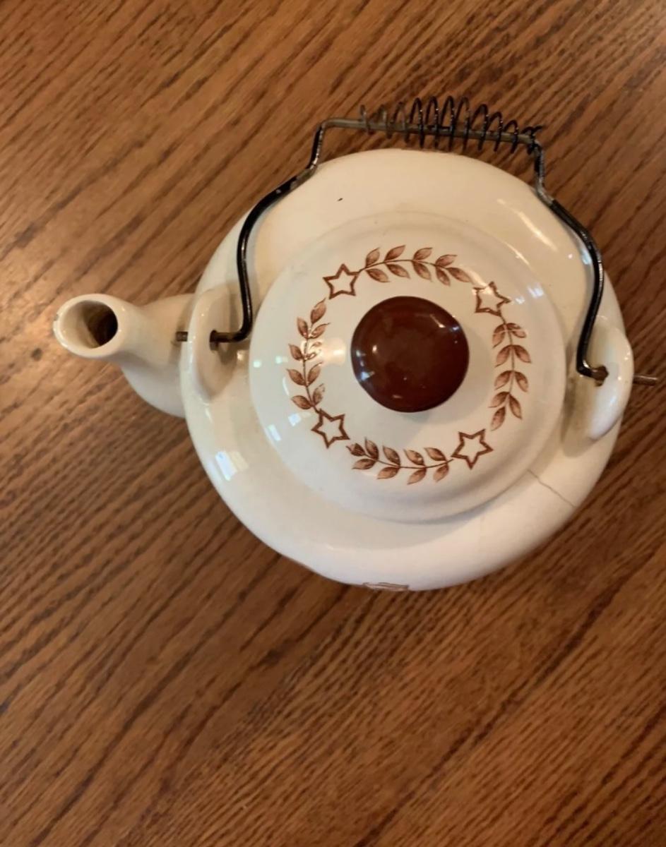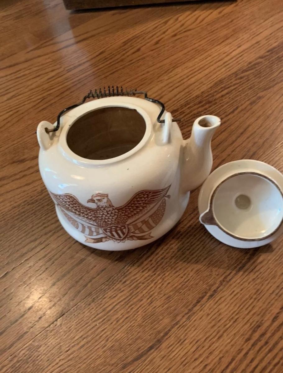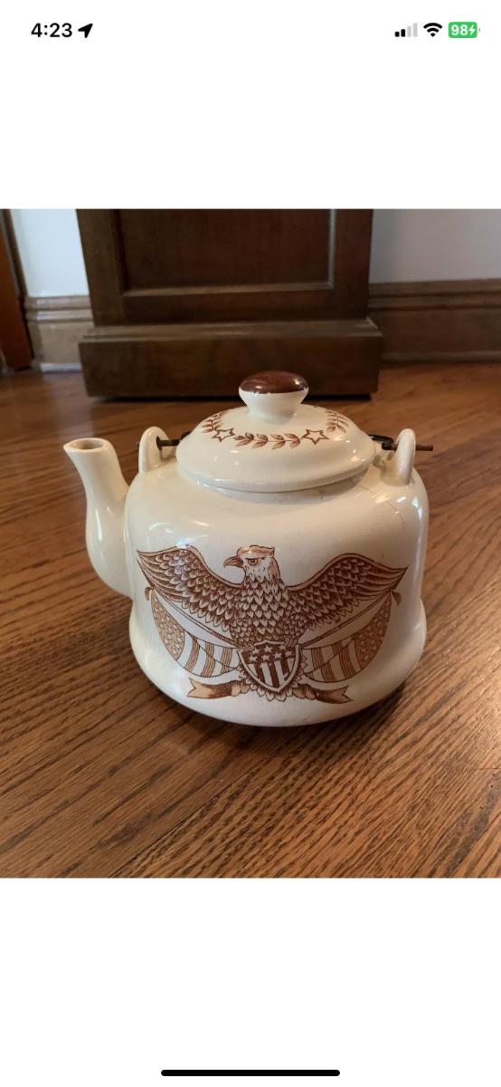 Vintage American brown eagle enamel handled teapot