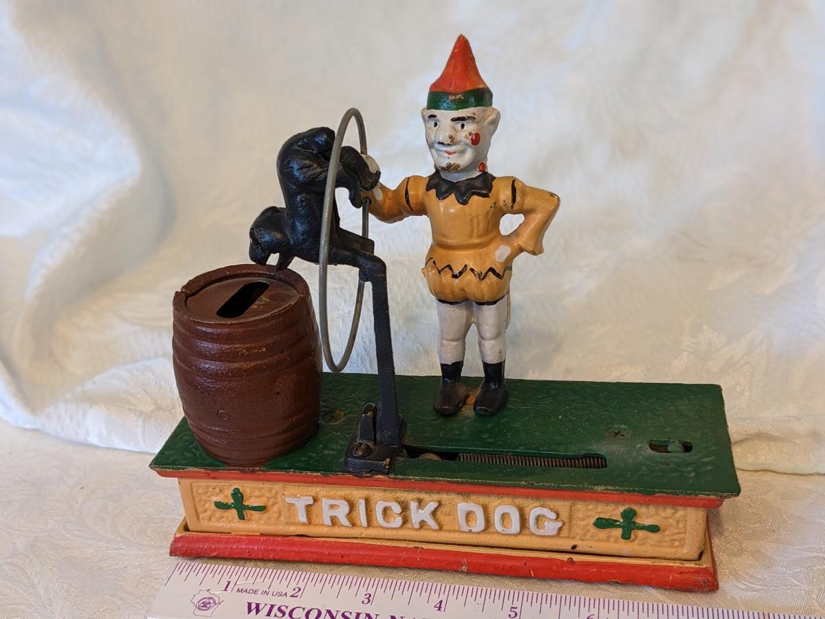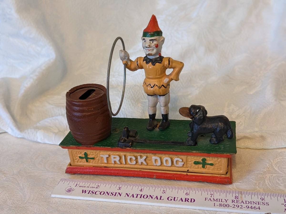 Vintage American Cast Iron Trick Dog Mechanical Coin Bank