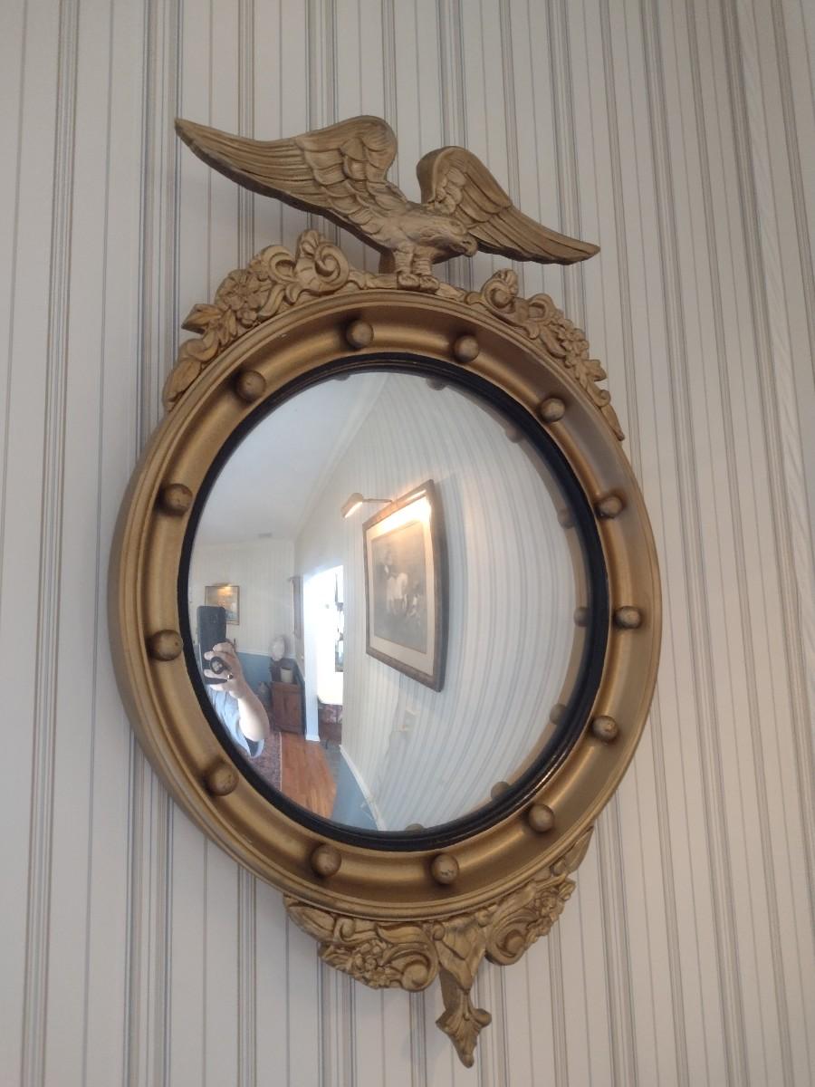Vintage American Federal Eagle Giltwood Convex Wall Mirror