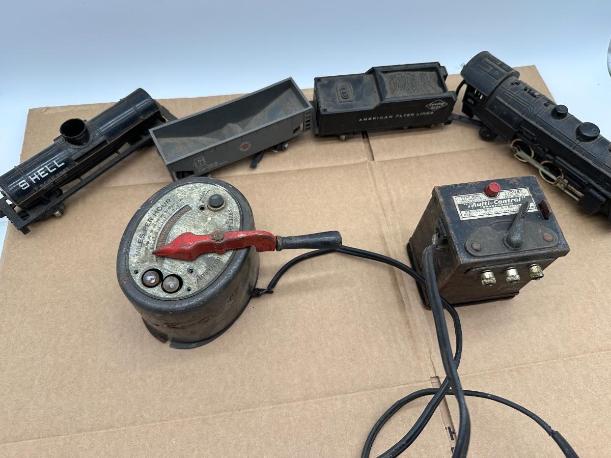 Vintage American Flyer Train Lot – Locomotives, Cars, Transformer, Speed Controller & Track – As Found