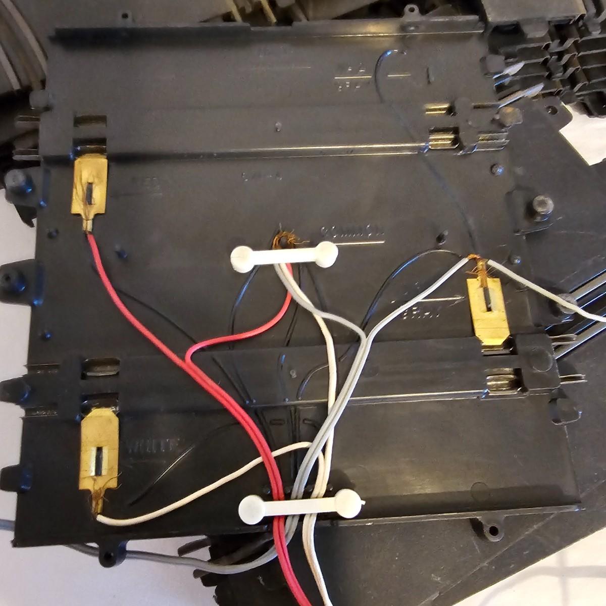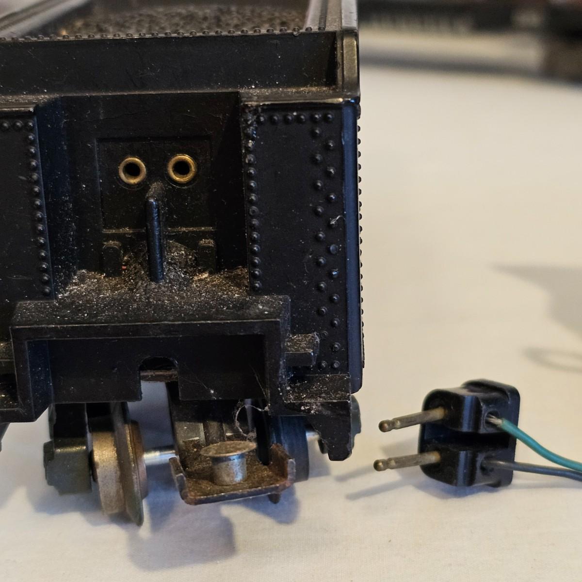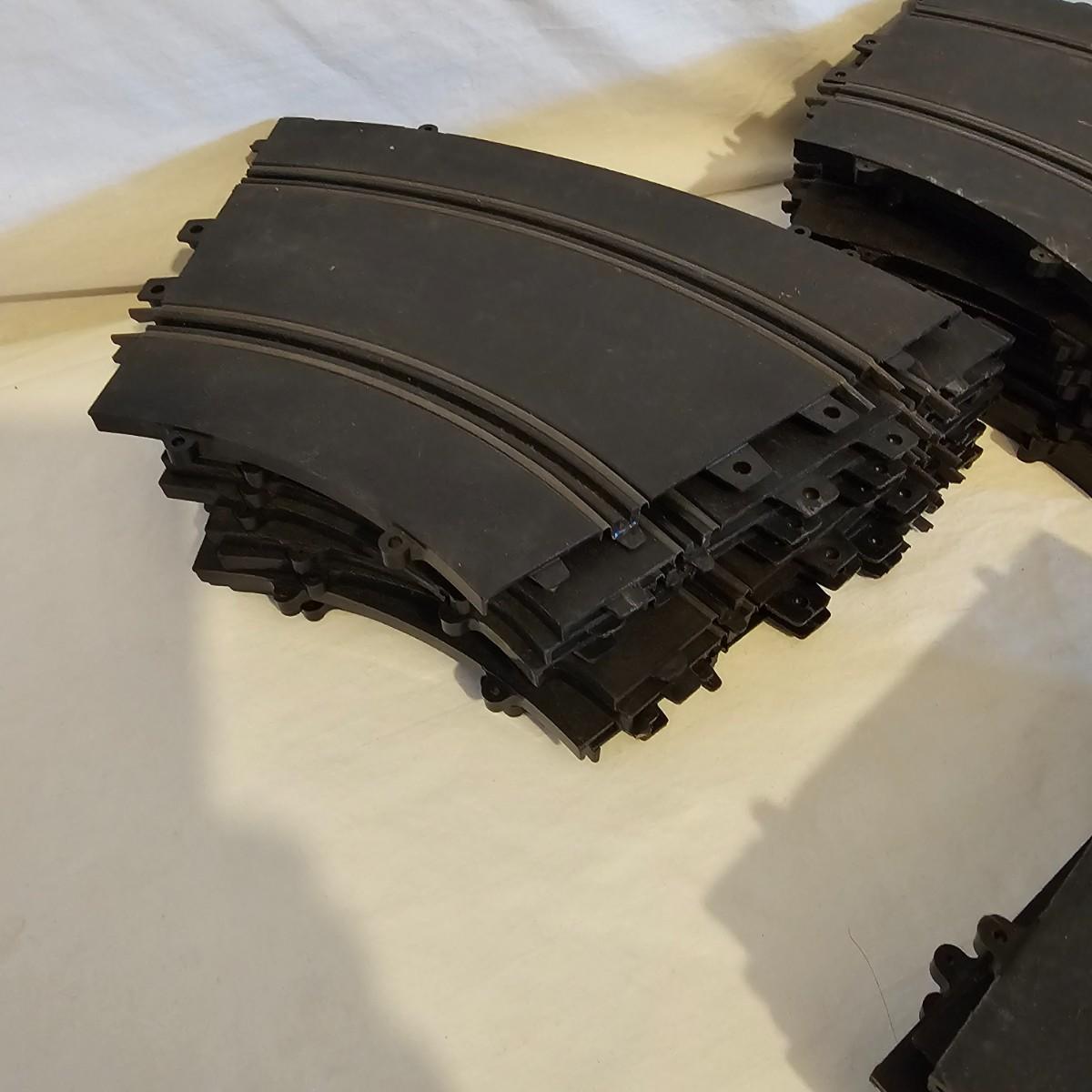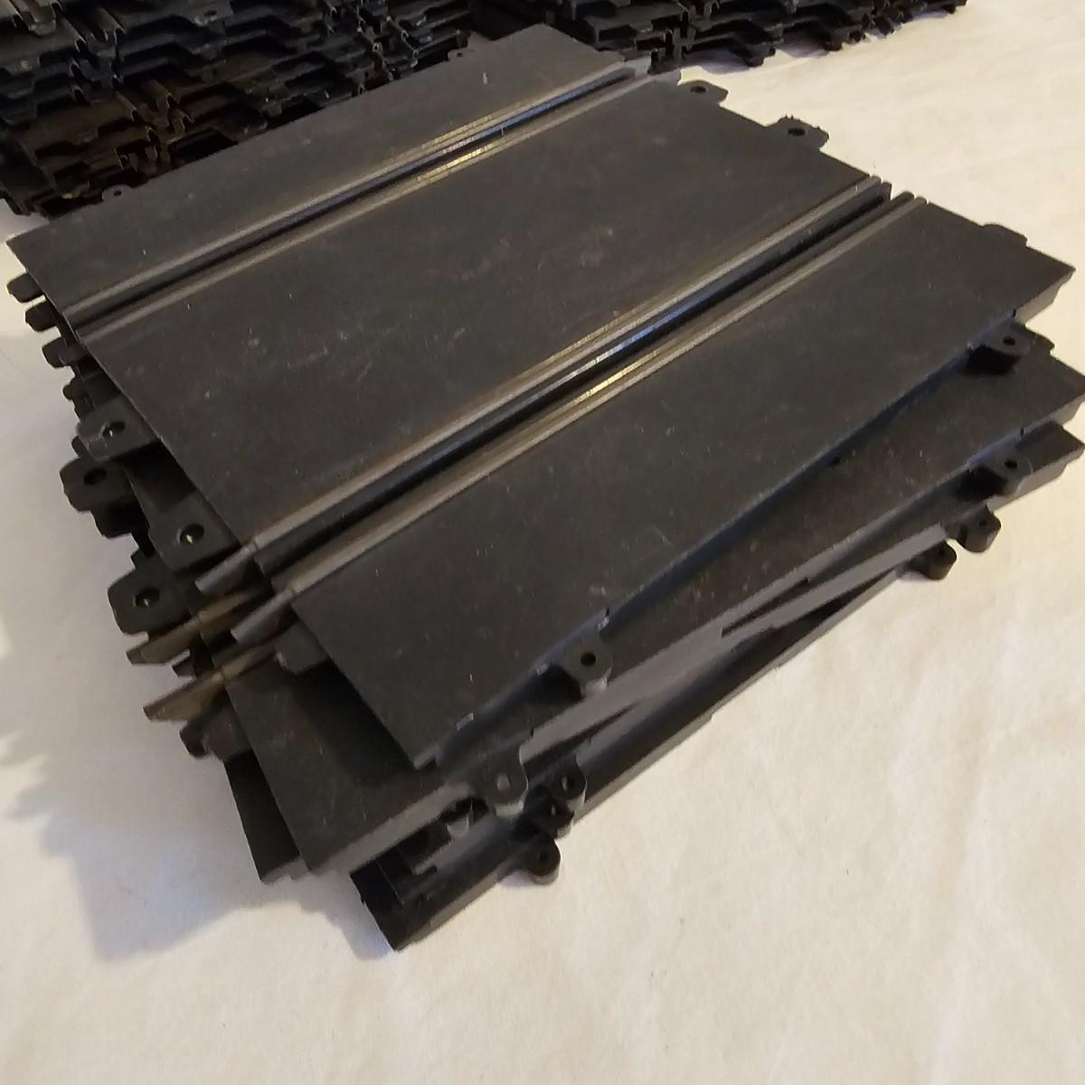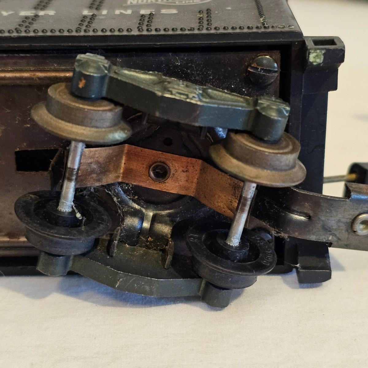 Amerivan Flyer 4-6-2 steam engine, tender and four additional cars plus straight, curved, crossover track. Includes one No. 22020 transformer which hummed when plugged in. Unable to test engine as caboose is missing some wheelsets. Missile launching car has no missile, just car and controller. Ten straight and 16 pieces curved two-rail track, rusty. Lot also includes some slot car track with an Eldon 3851 transformer which hummed when plugged in. No cars so unable to test. Two partial controller units, eight straight, 19 curved and one crossover track. Lastly, one Toy Train in a Tin. Small battery operated (item powered on when tested) Engine and three cars plus some track, may not be complete set. See photos for details. Shipping available.