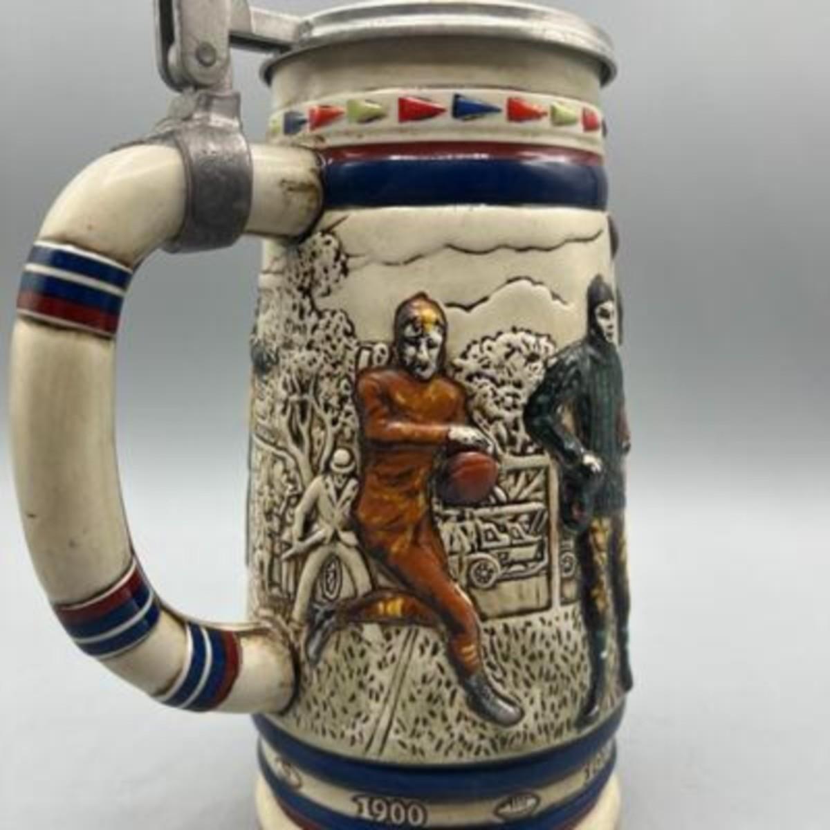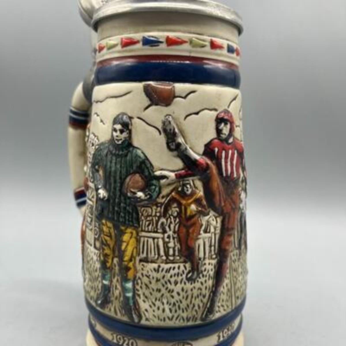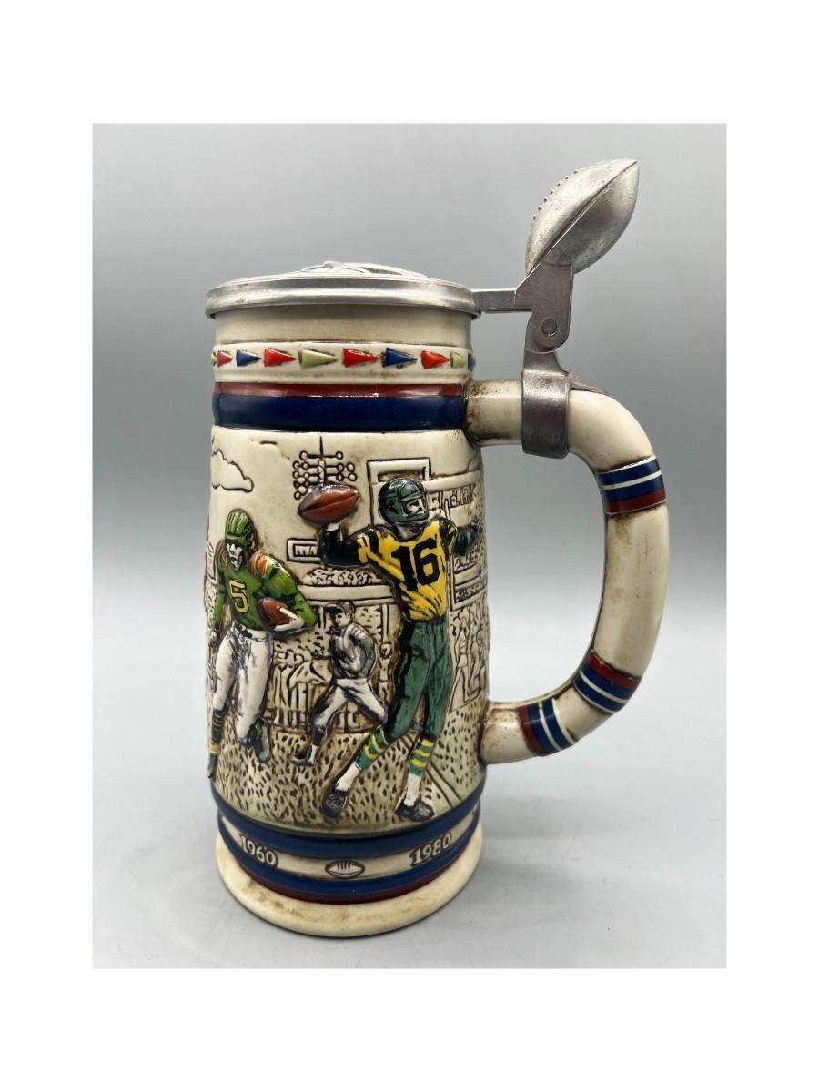 Vintage American Football Themed Lidded Beer Stein Mug
