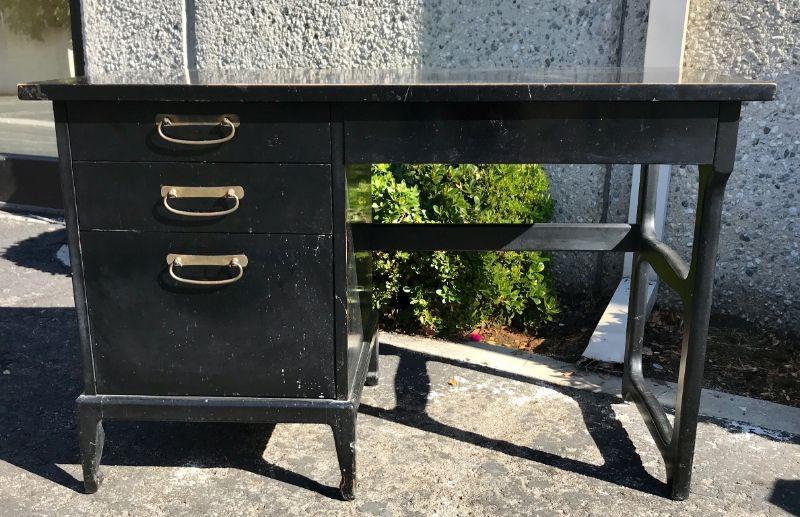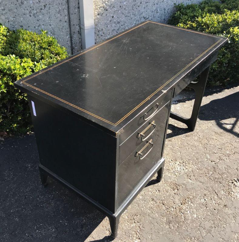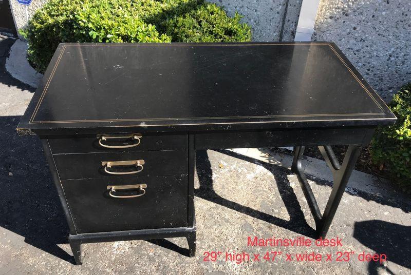 Vintage black American of Martinsville writing desk. 4 drawers. Measures 29"hx47"wx23"d. Has some minor signs of age and use.