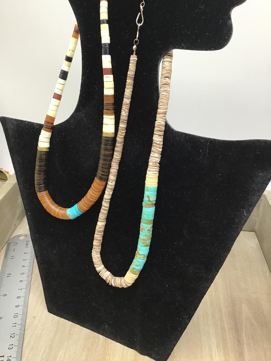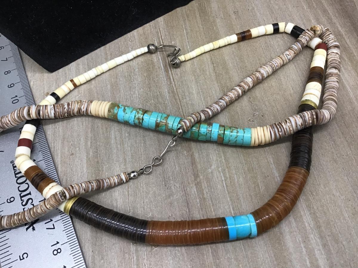 Vintage American Rolled Turquoise & Shell Heishi Bead Necklaces