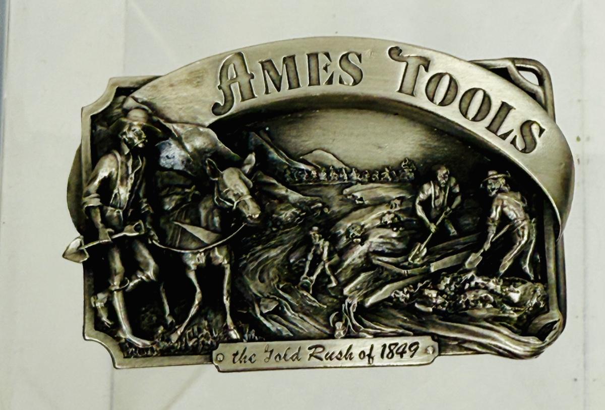 Vintage Ames Tools Gold Rush of 1849 Pewter Belt Buckle