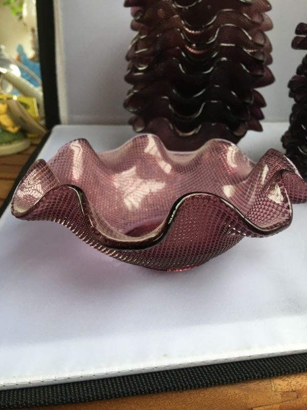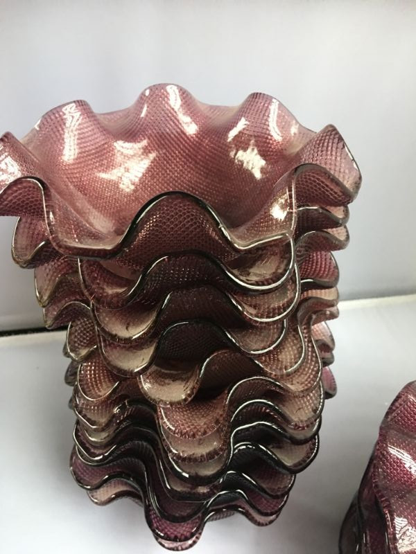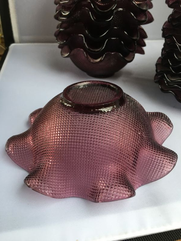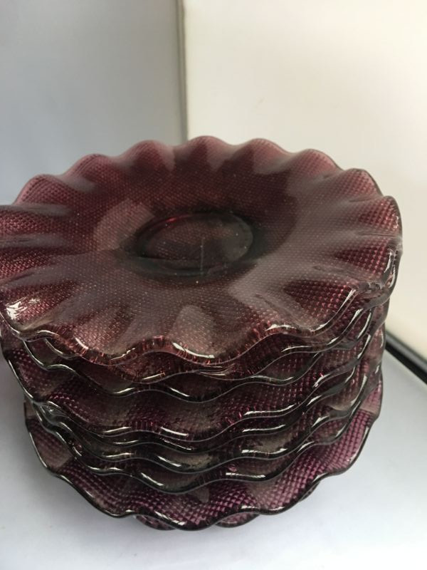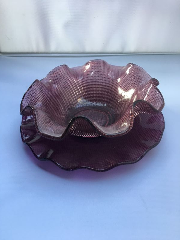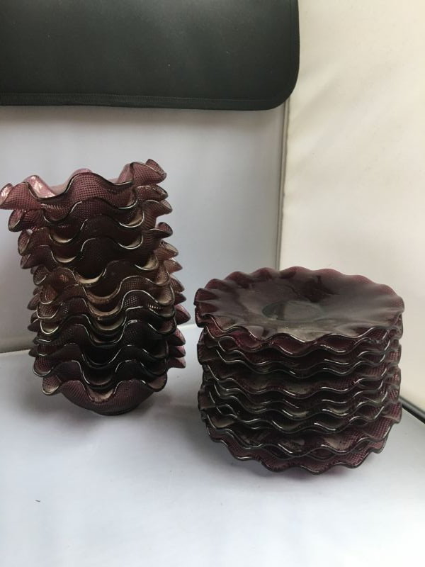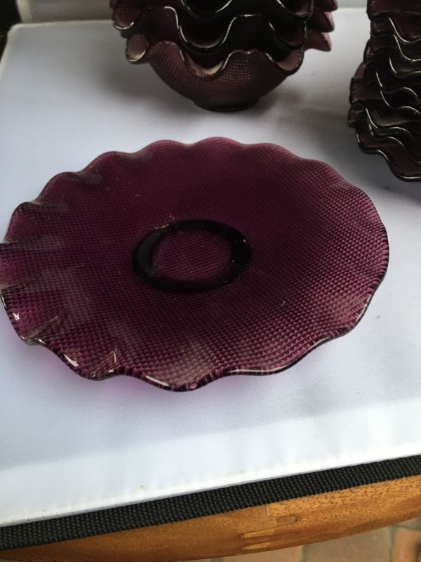 Vintage Amethyst Art Glass Candy Dish/bowl Ruffled Edge Excellent condition 24 Plates or 12 Sets