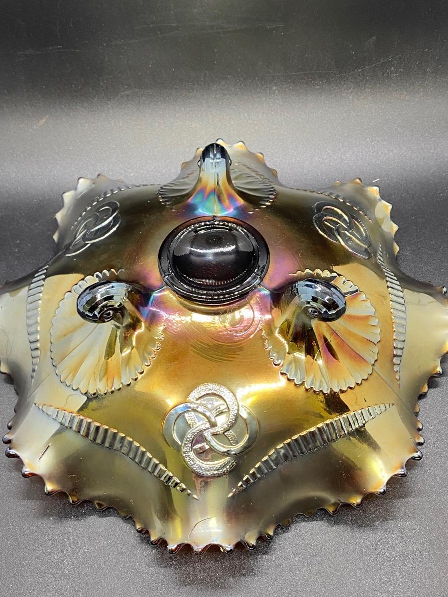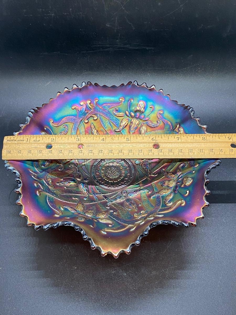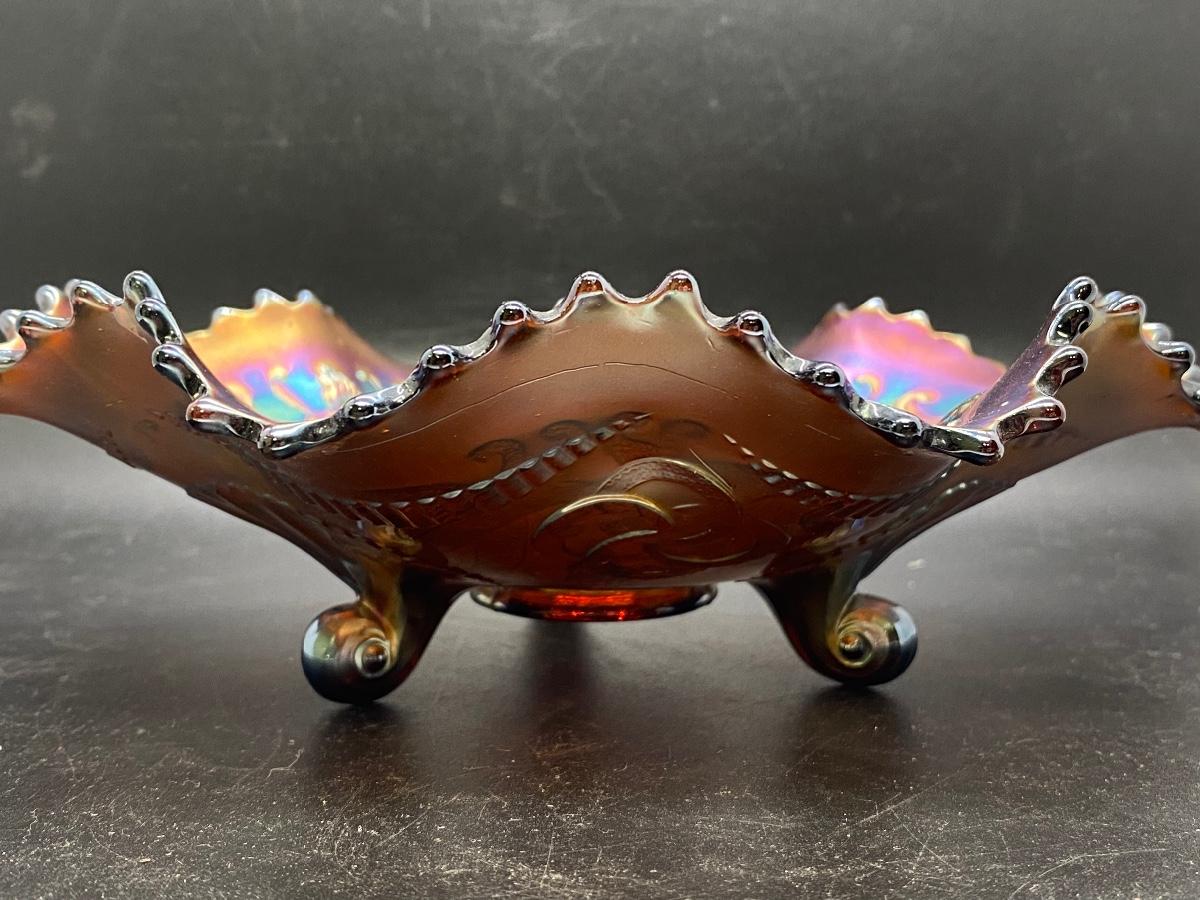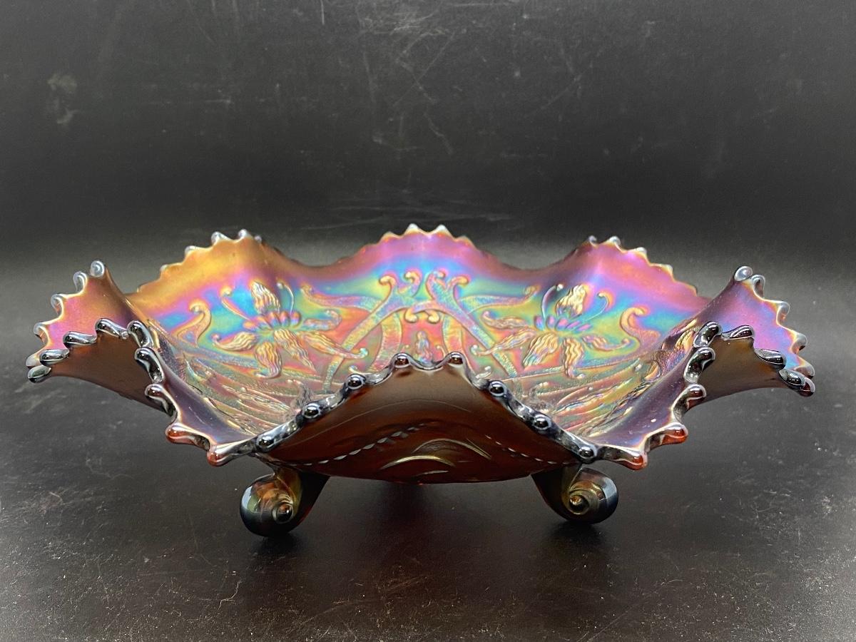 Vintage Amethyst Carnival Glass Footed Ruffled Bowl Northwood Wishbone