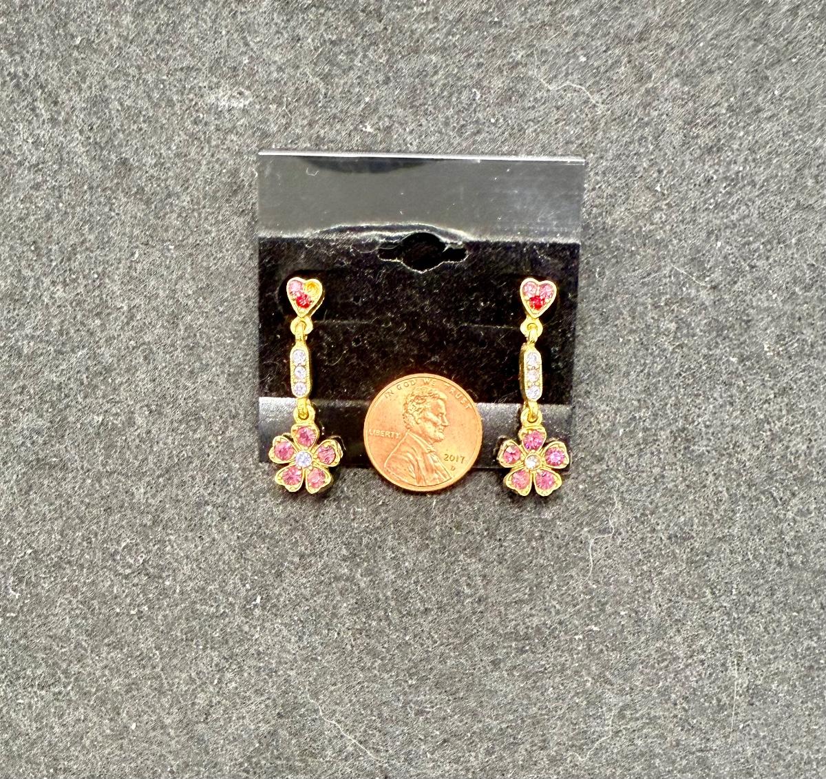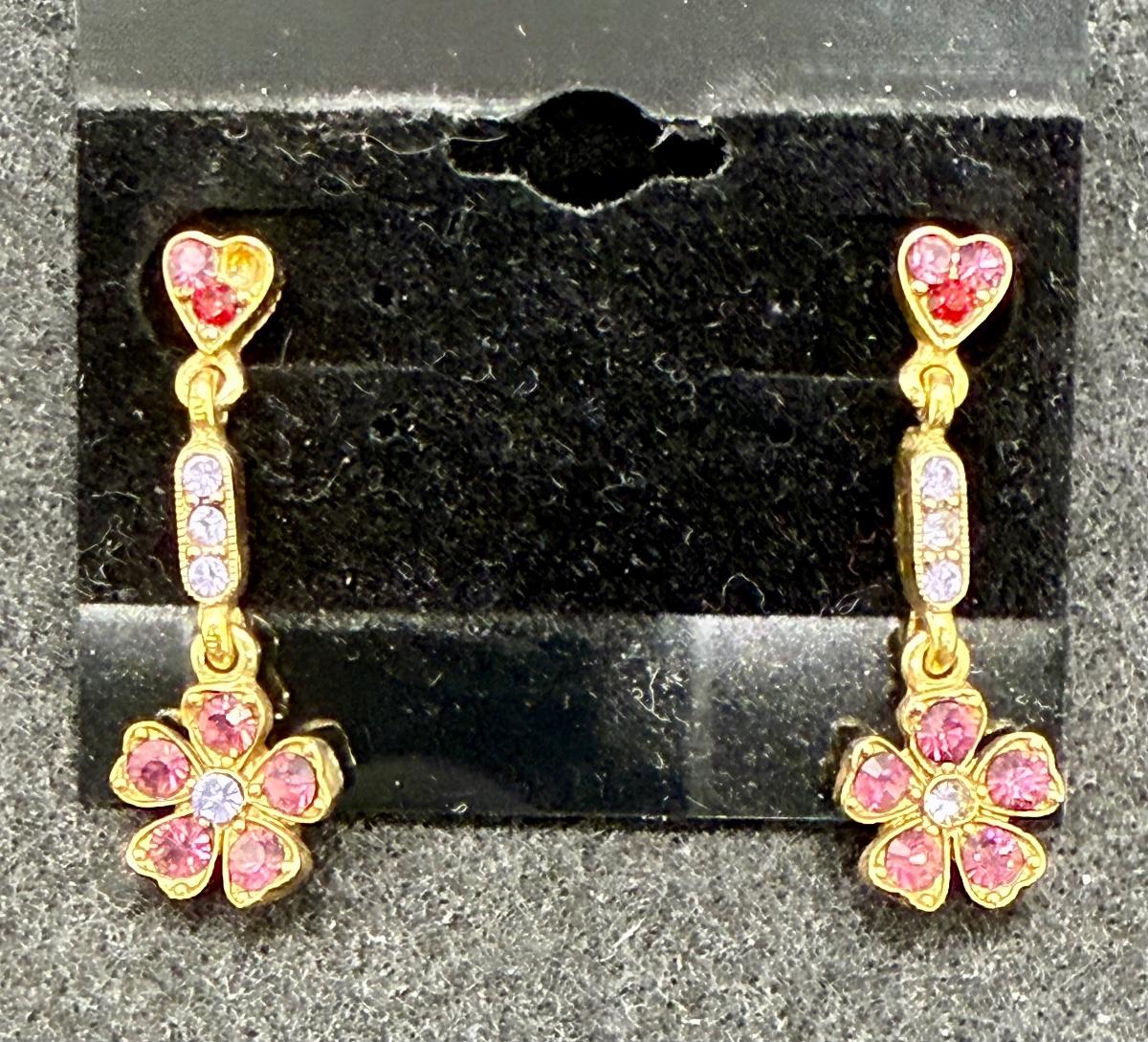Tiny heart shaped posts and dangling flowers. For pierced ears. In good condition.