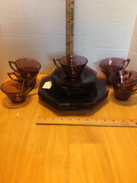 Vintage amethyst luncheon set 4 large plates 7 saucers 8 cups