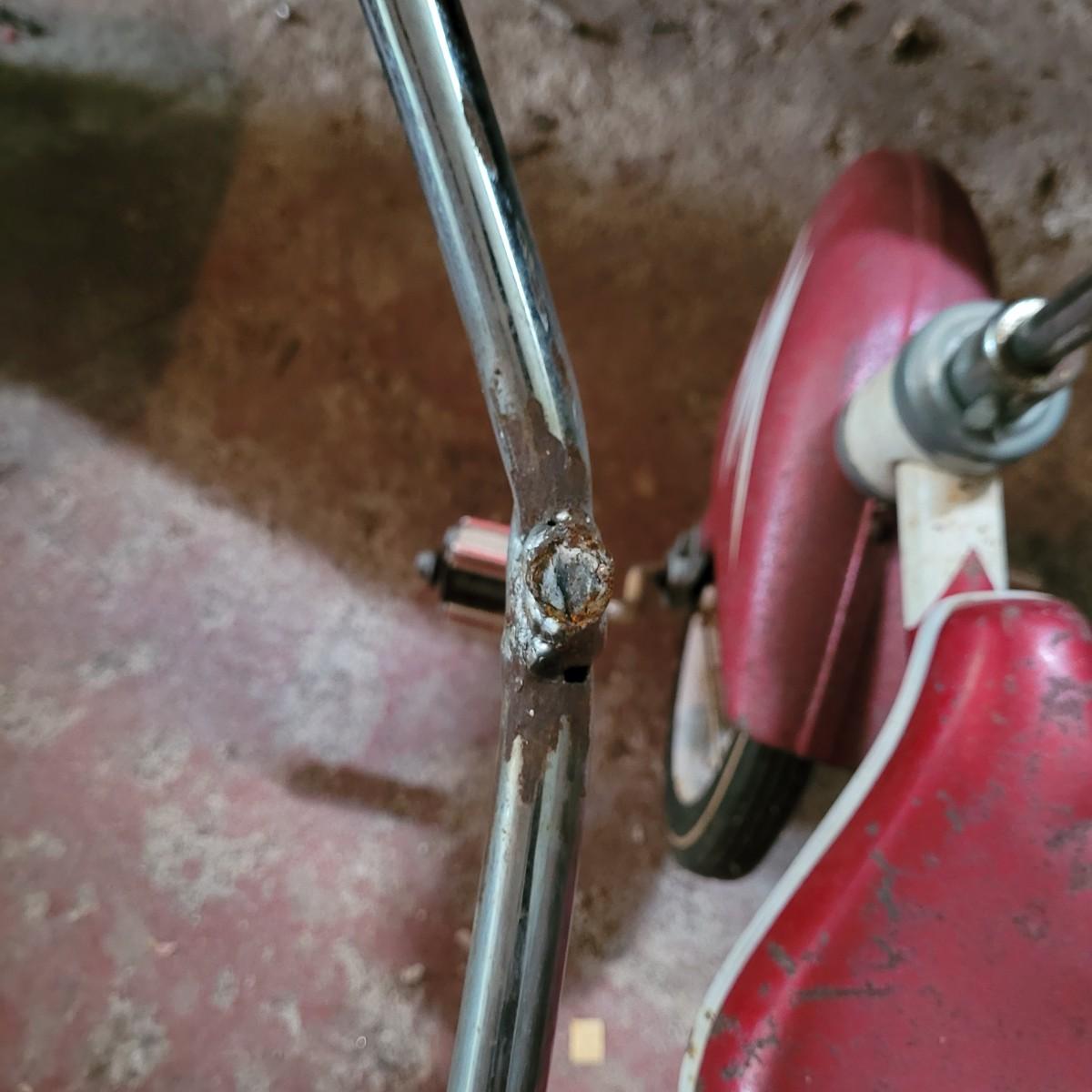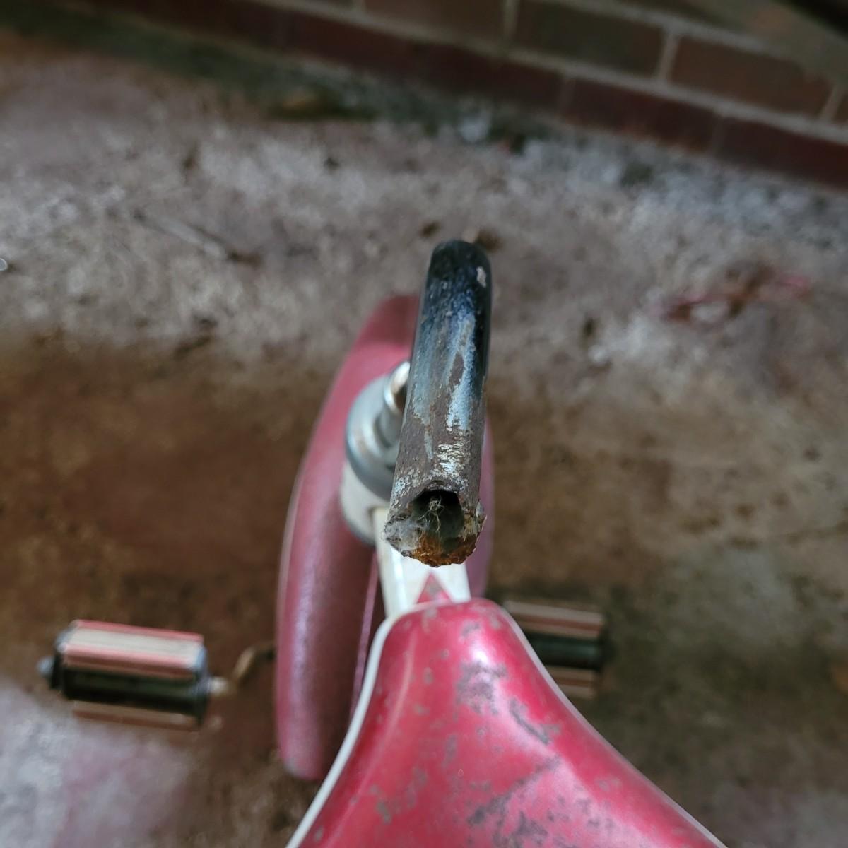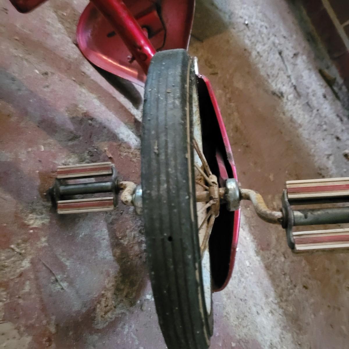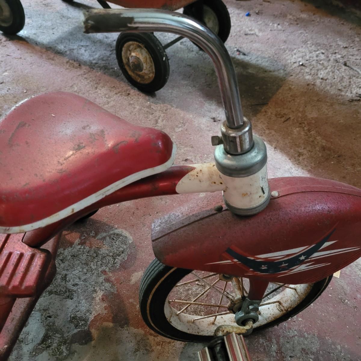 AMF wagon has significant rusting throughout, especially in basin. Handle and axles swivel well. Very loud and squeaky when rolled. Tricycle handlebars broken off, may be able to be reattached. Significant rusting throughout. Rolls well but loud. Wagon measures approximately 34"L x15.5"D x14"H. Tricycle is 27"L x16.5"W x24"H. Seat height 16". Local pickup only.