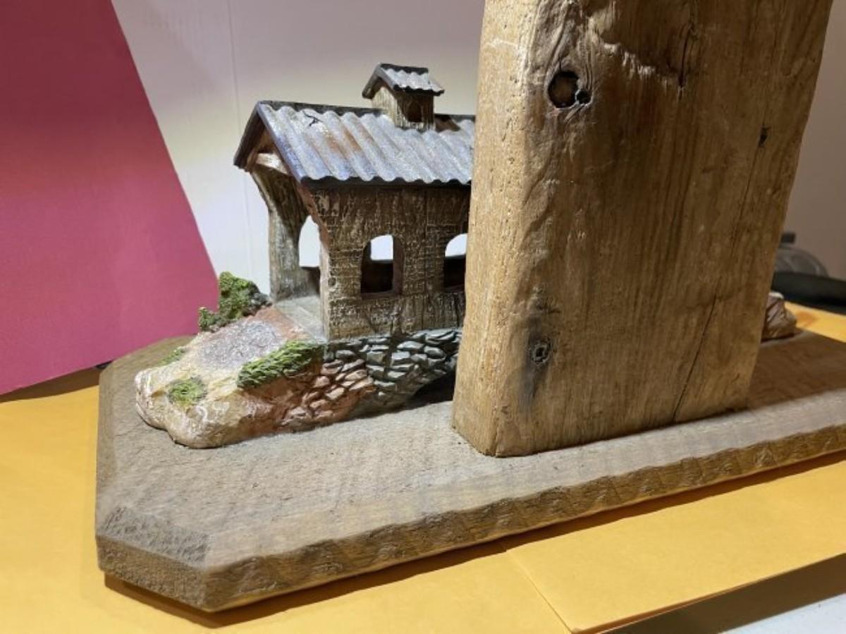 Vintage Amish Wood & Resin Hand Made Horse Buggy/Covered Bridge Scene 10.50" x 15.50" w/Repurposed Wood as Pic'd. $18 DOMESTIC INHOUSE SHIPPING.