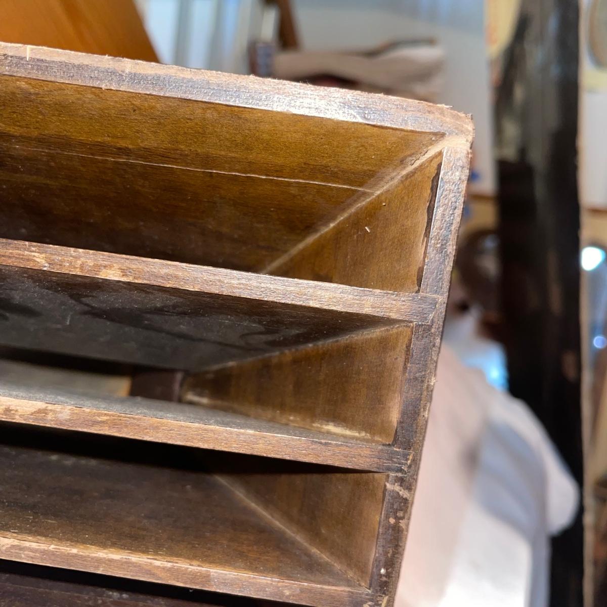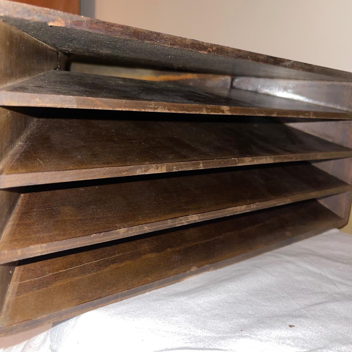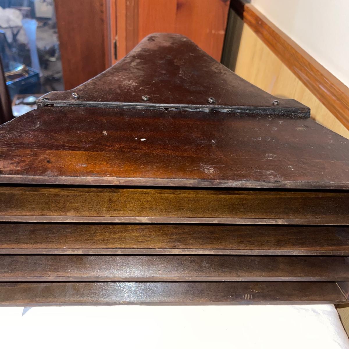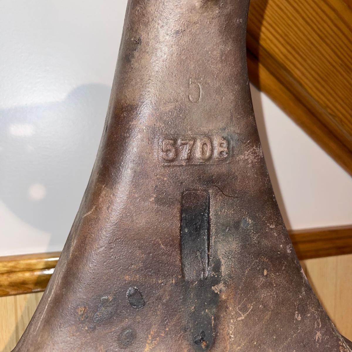 This item appears to be a vintage amplifier or something similar. It has a slightly curved iron base, where it has holes for attachment, and a slatted wooden box top. It measures about 16” tall and 15” wide at its widest part. The underside of the iron part has the numbers “5 and 570B”.