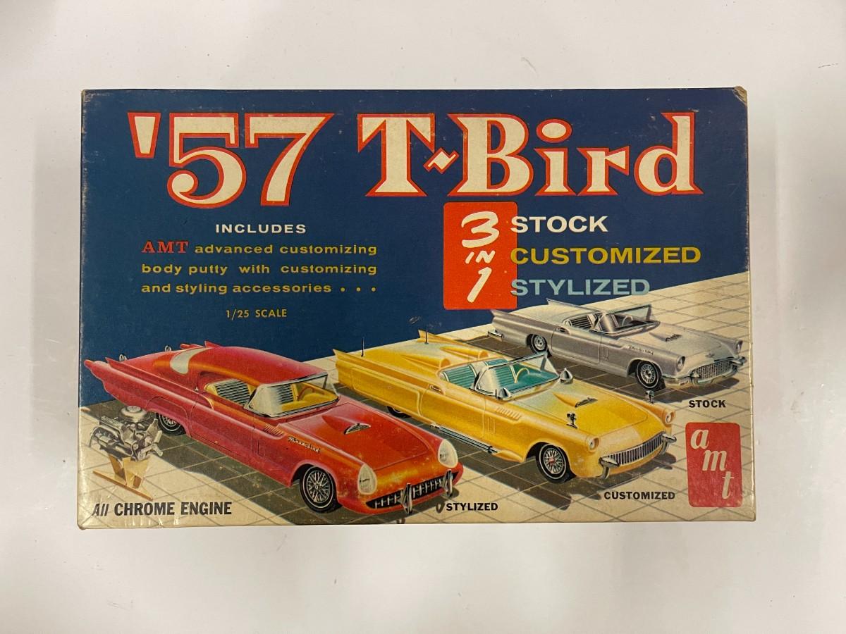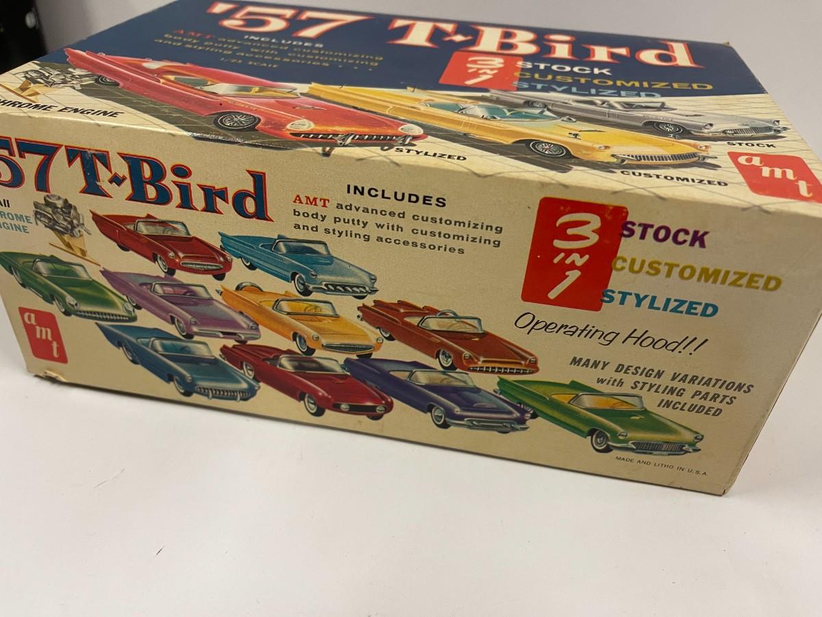 Vintage AMT 1957 T-Bird model car kit. Appears to be complete.