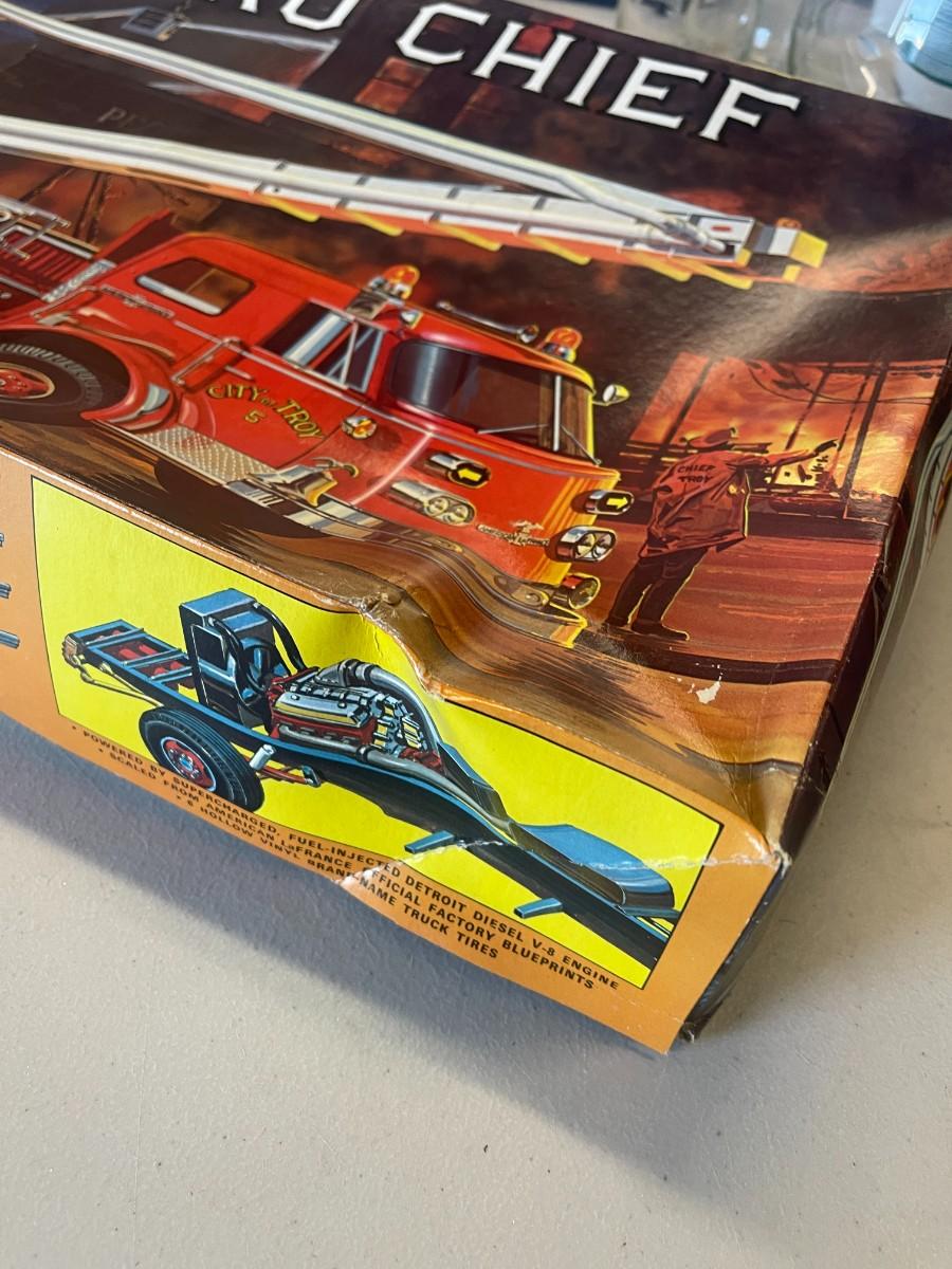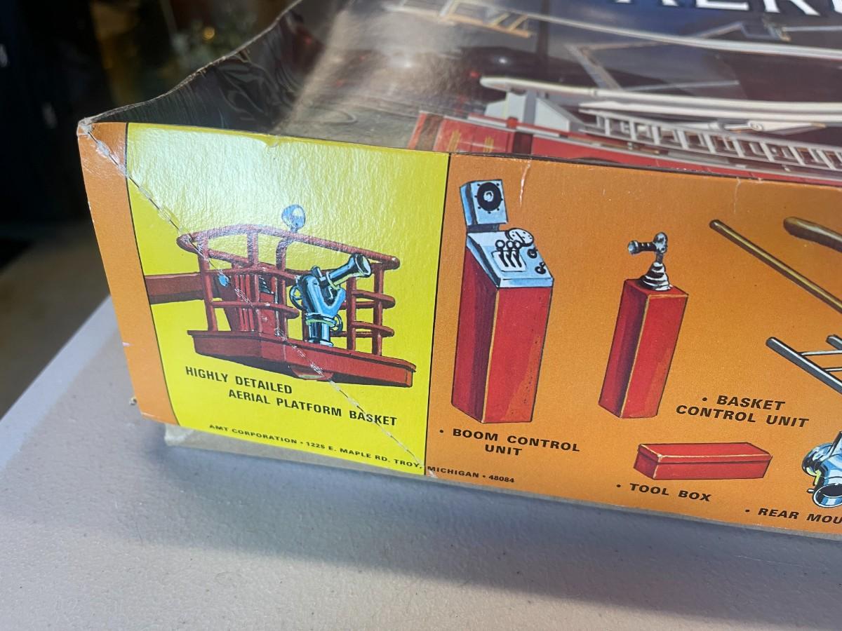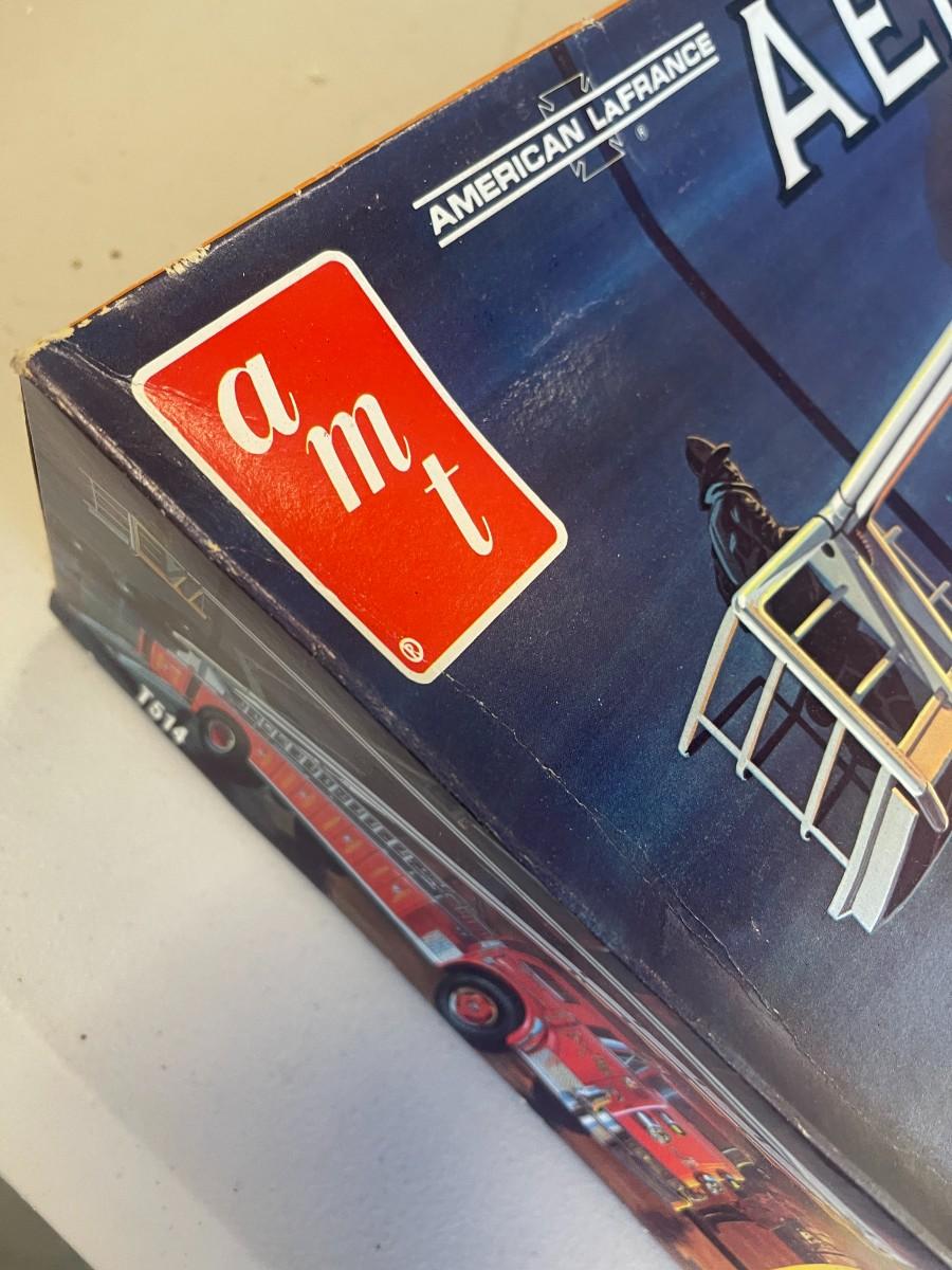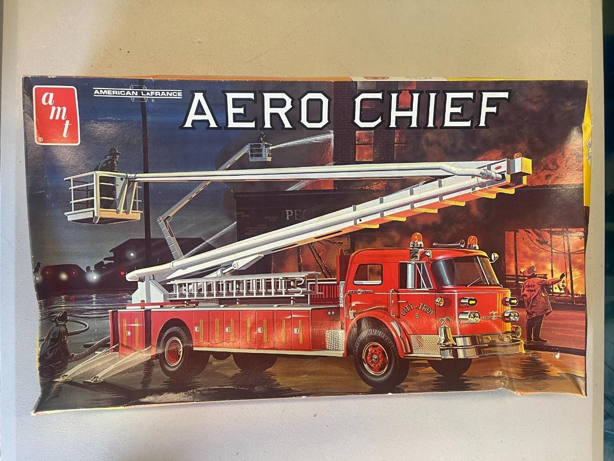 Vintage AMT Aero Chief fire truck model. Appears to be complete. Box is damaged.