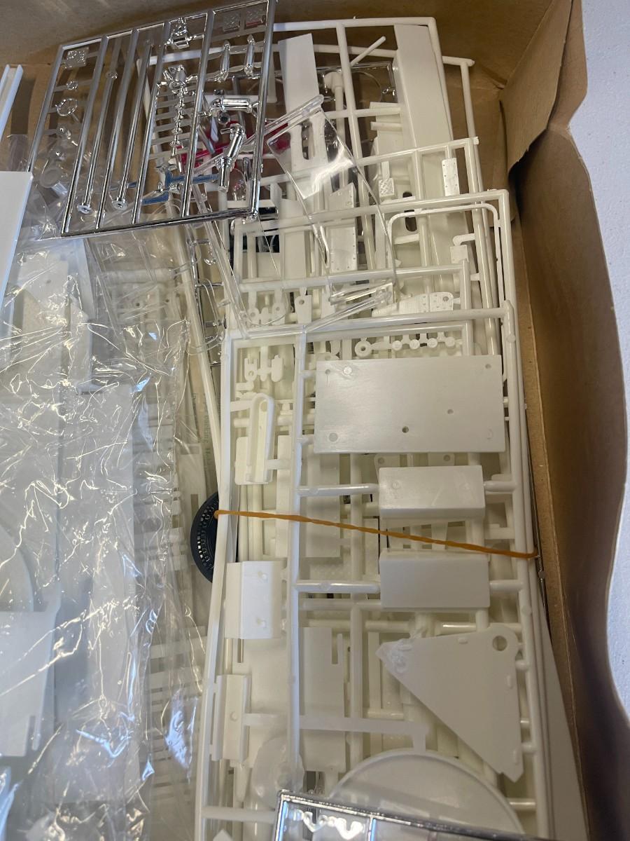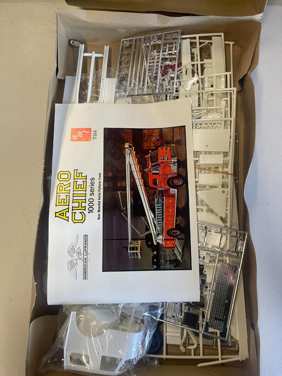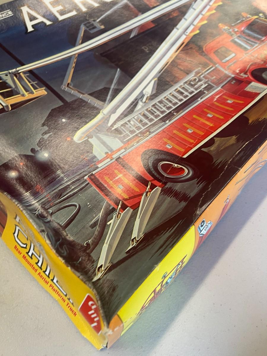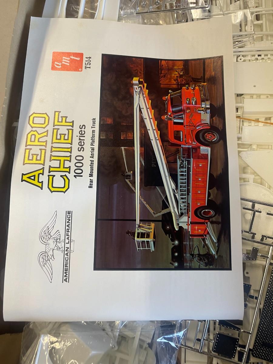 Vintage AMT Aero Chief fire truck model. Appears to be complete. Box is damaged.