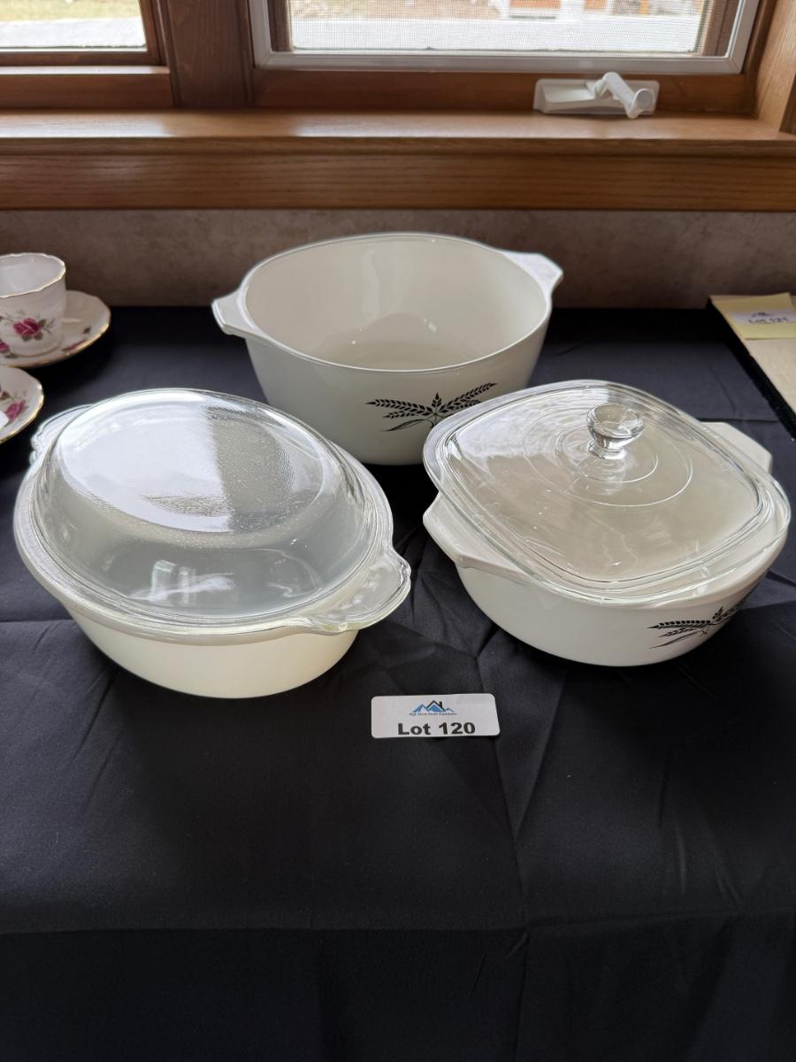 Firerking Casserole & Anchor Hawking dishes & 2 lids