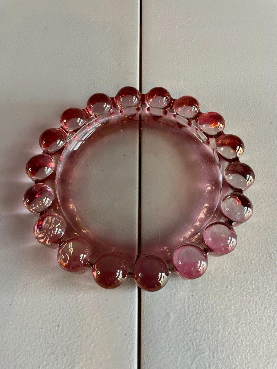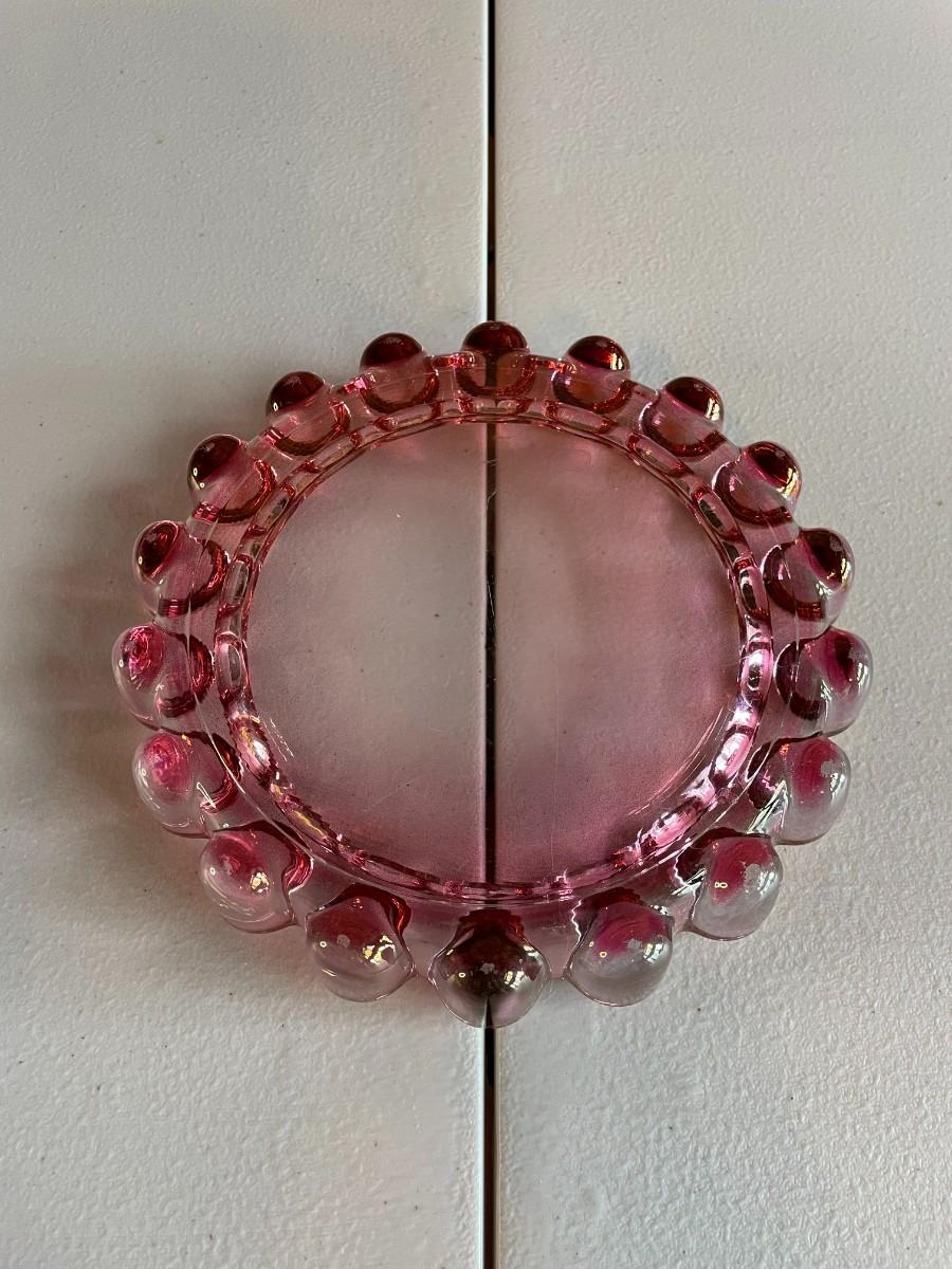 Vintage Pink Bubble Glass Cigar Ashtray by Anchor Hocking Glass Co.