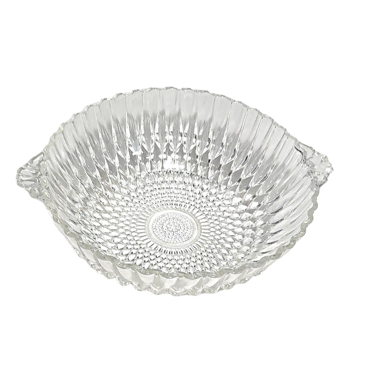 - Clear Pressed Glass Peacock Tear Drop Hobnail Fruit or Salad Serving Bowl w/Handles