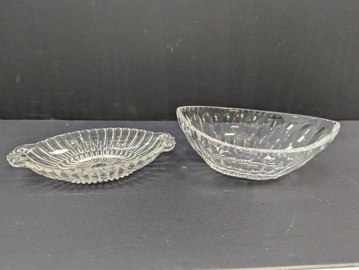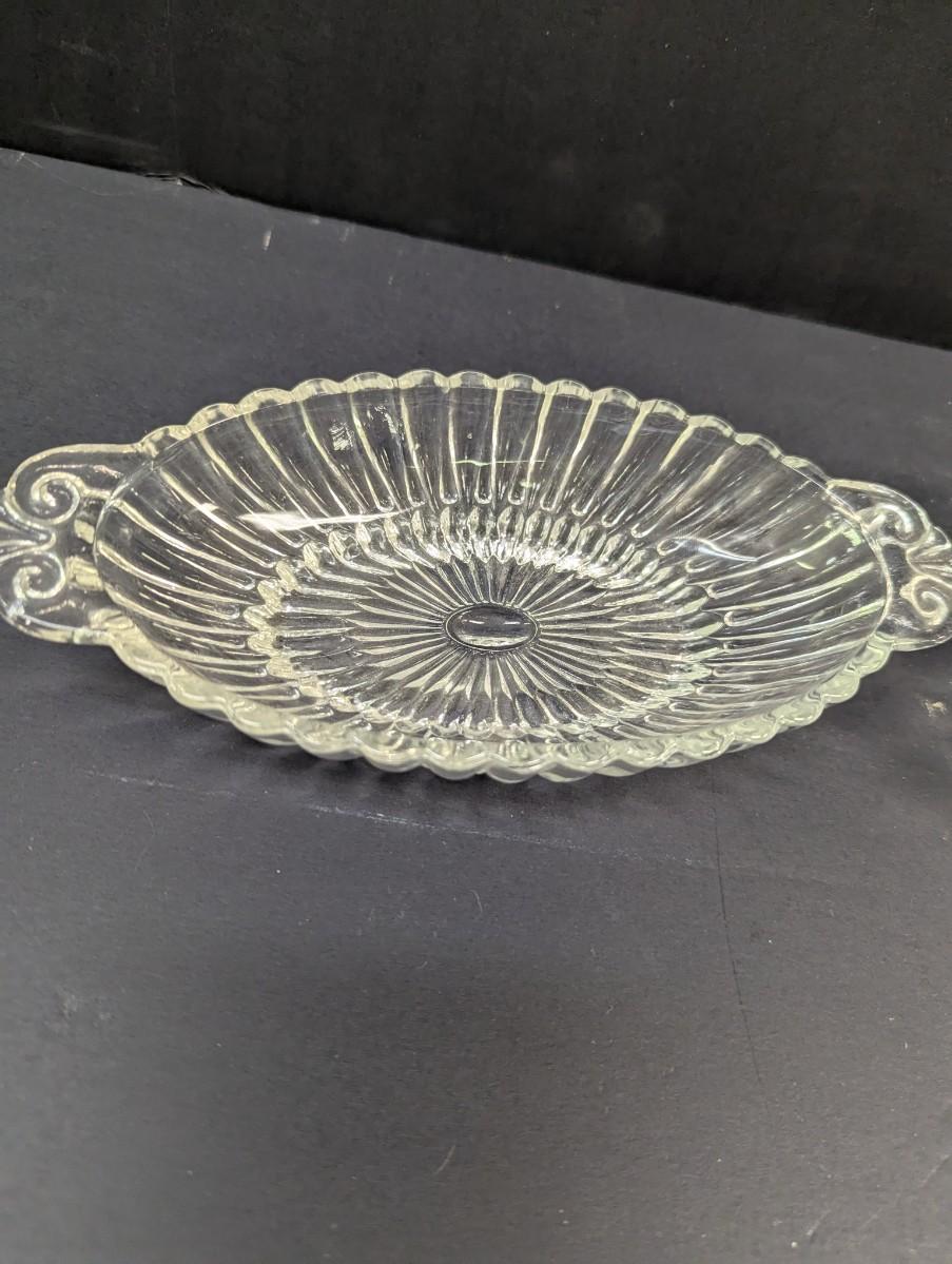 Vintage Anchor Hocking Clear Pressed Glass Dish With Handles & Glass Bowl