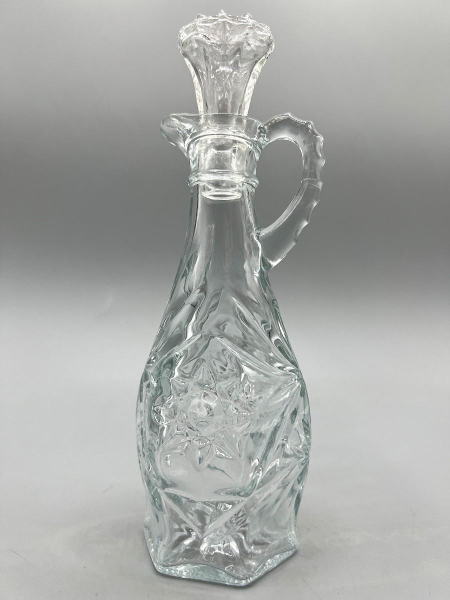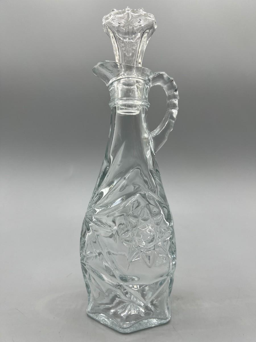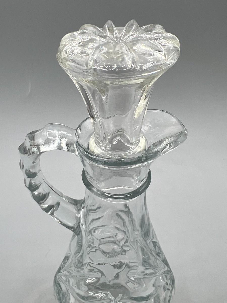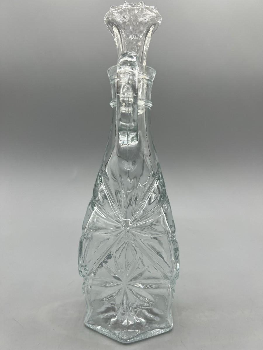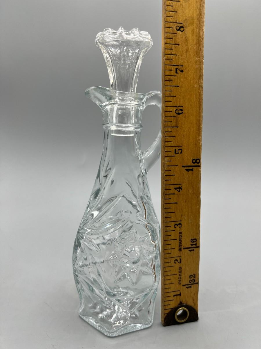Vintage Anchor Hocking Crystal Glass Etched Starburst Pattern Oil Vinegar Bottle Cruet