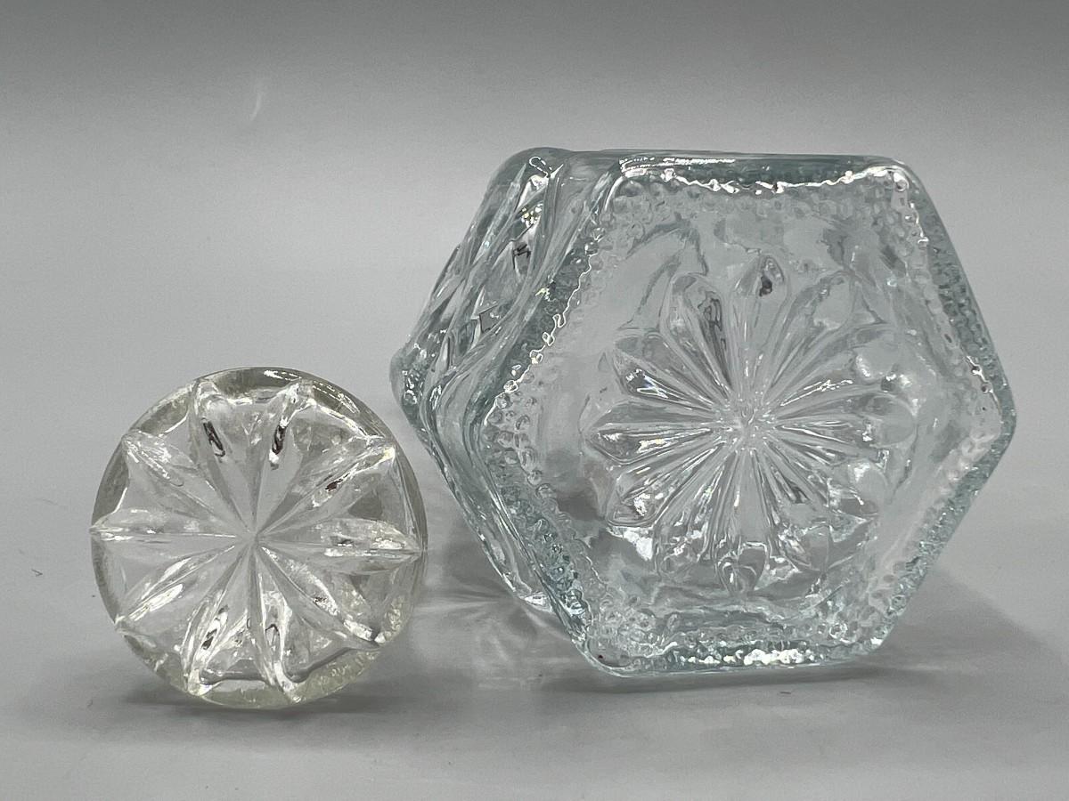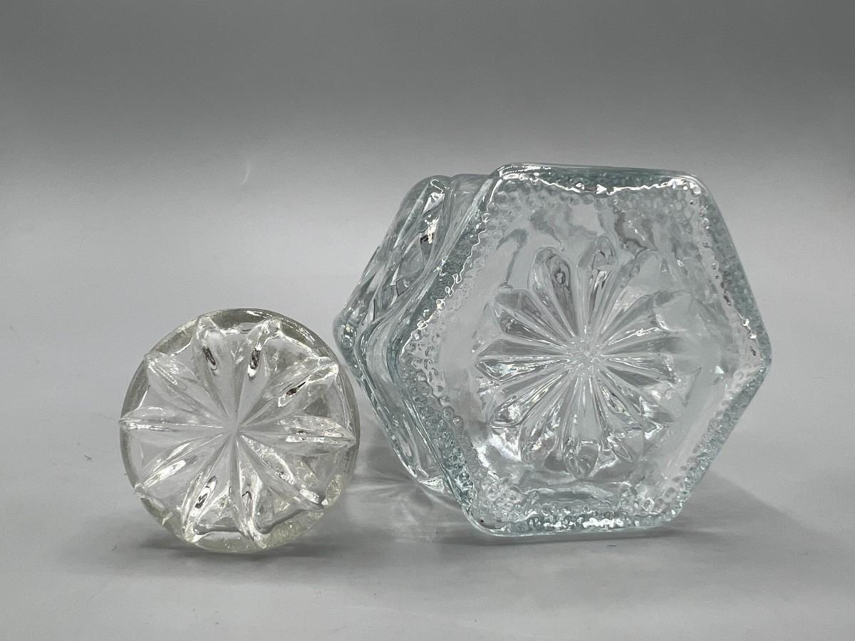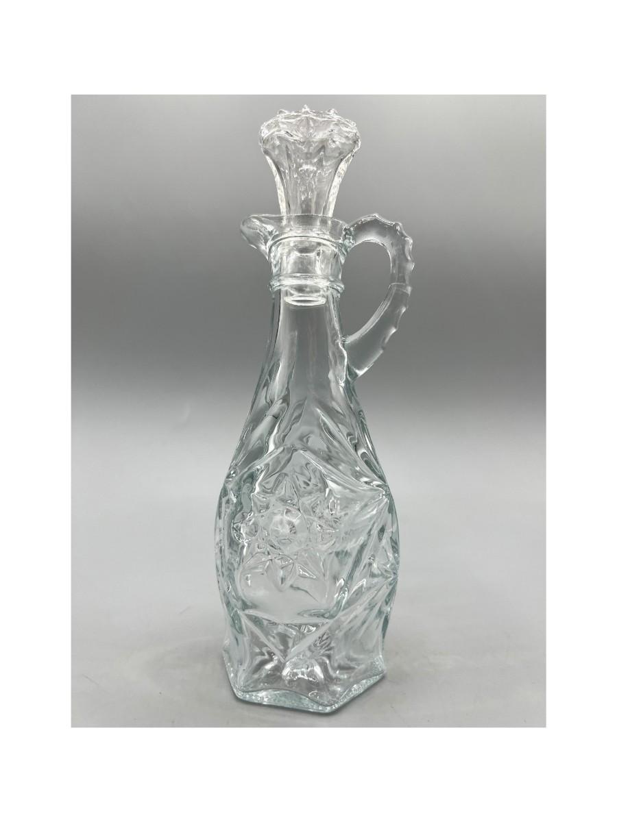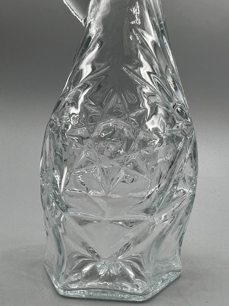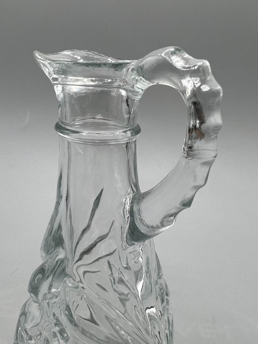 Vintage Anchor Hocking Crystal Glass Etched Starburst Pattern Oil Vinegar Bottle Cruet