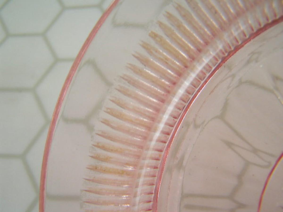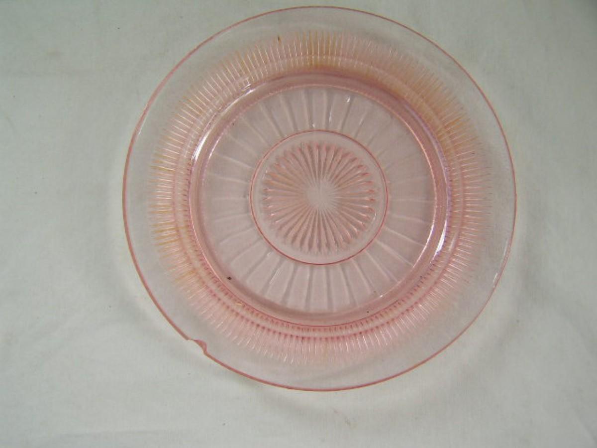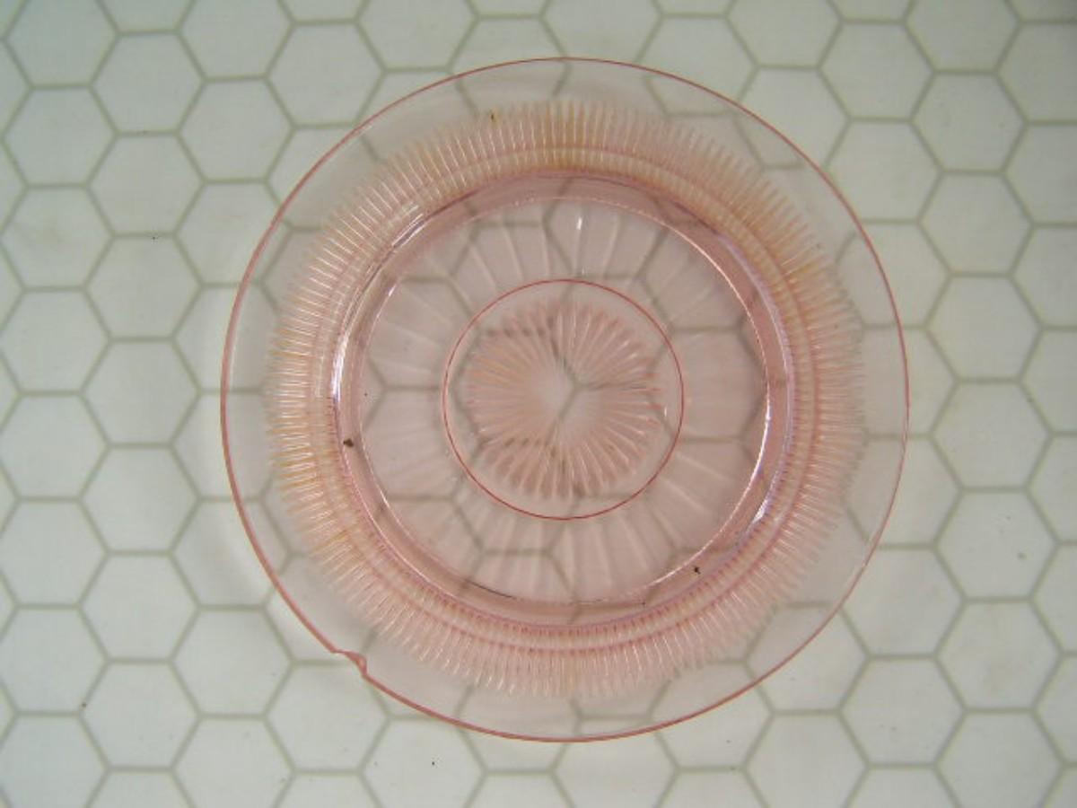 Vintage Anchor Hocking depression glass, c.1930s, “Coronation Pink” bread & butter plate, 6" dia. VG-EX