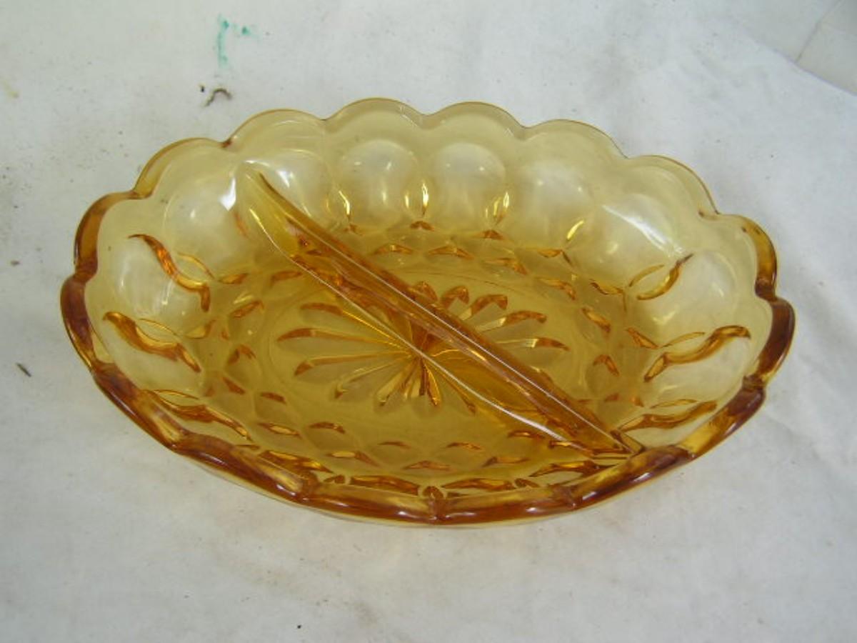 Vintage Anchor Hocking Fairfield Amber oval relish dish. C.1970s