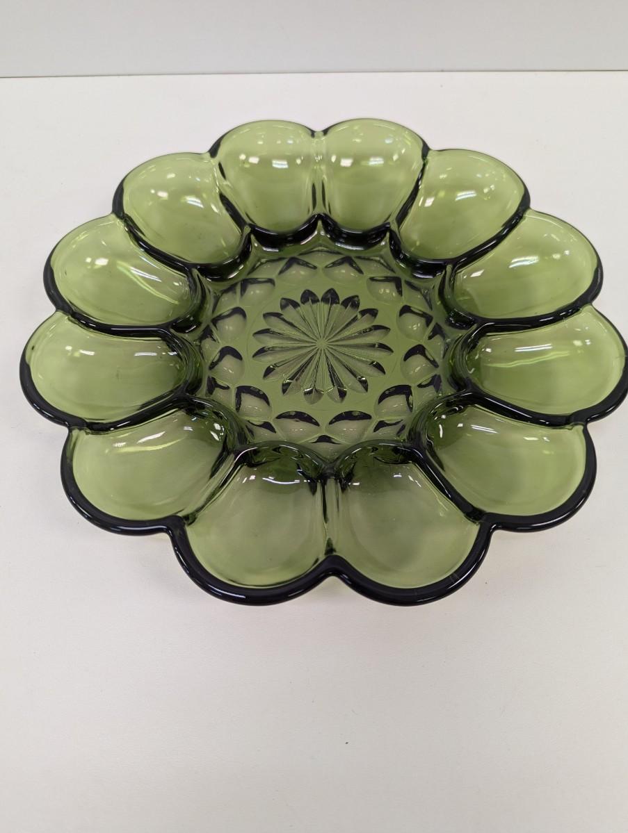 Vintage Anchor Hocking Fairfield Avocado Green Egg Plate