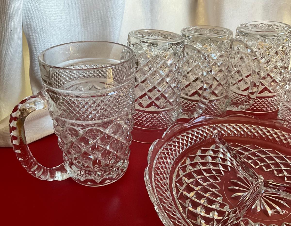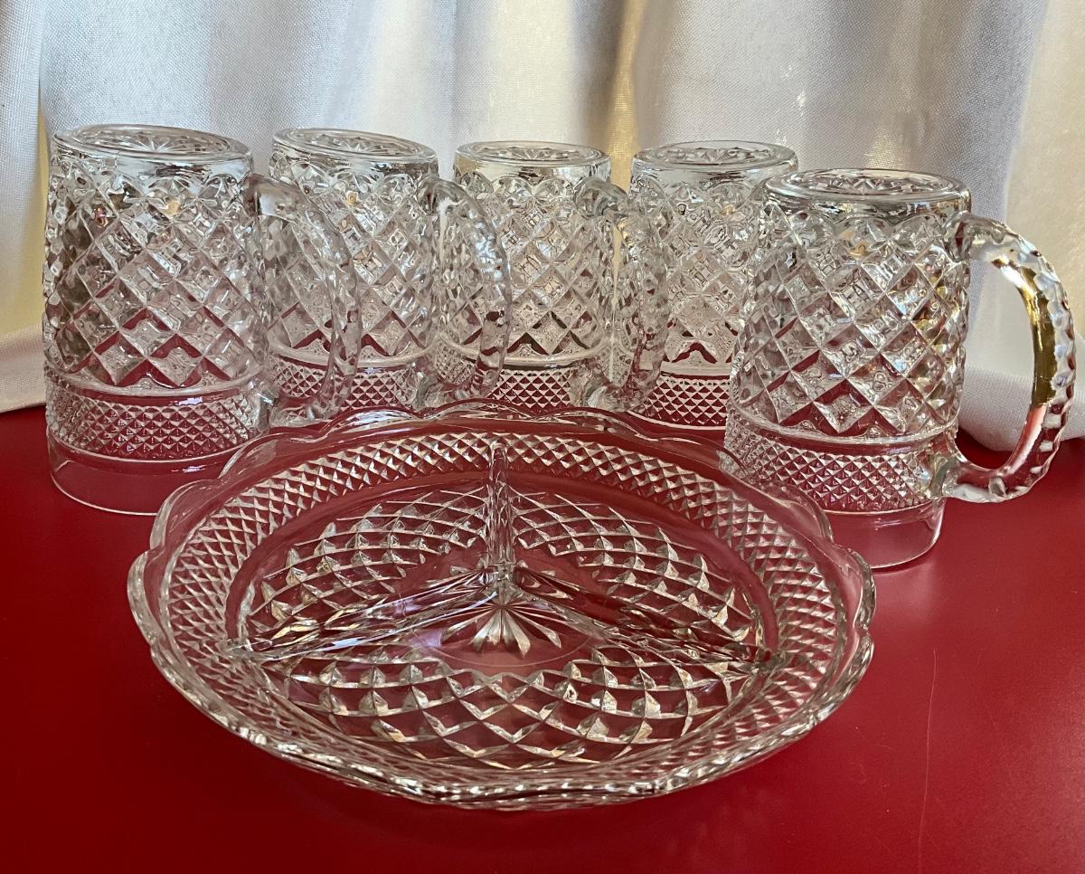 Vintage Anchor Hocking Wexford Glass Mugs, Serving platter