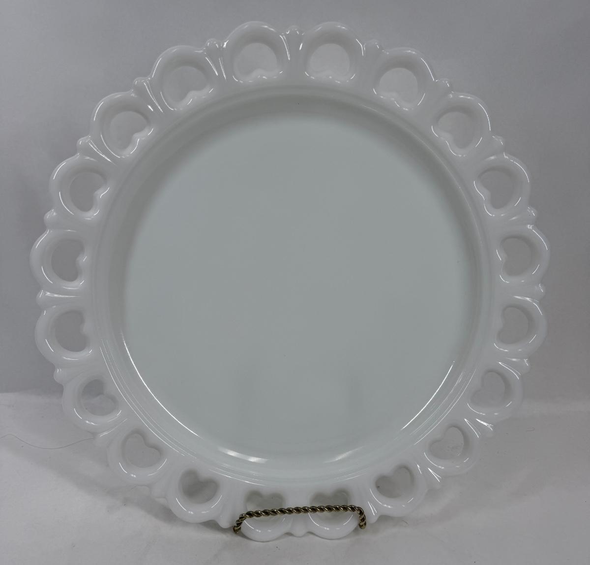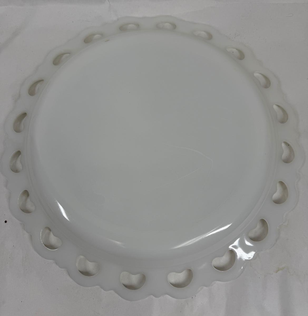 Vintage Anchor Hocking Milk Glass Round Platter Torte Cake Plate Lace Edge
