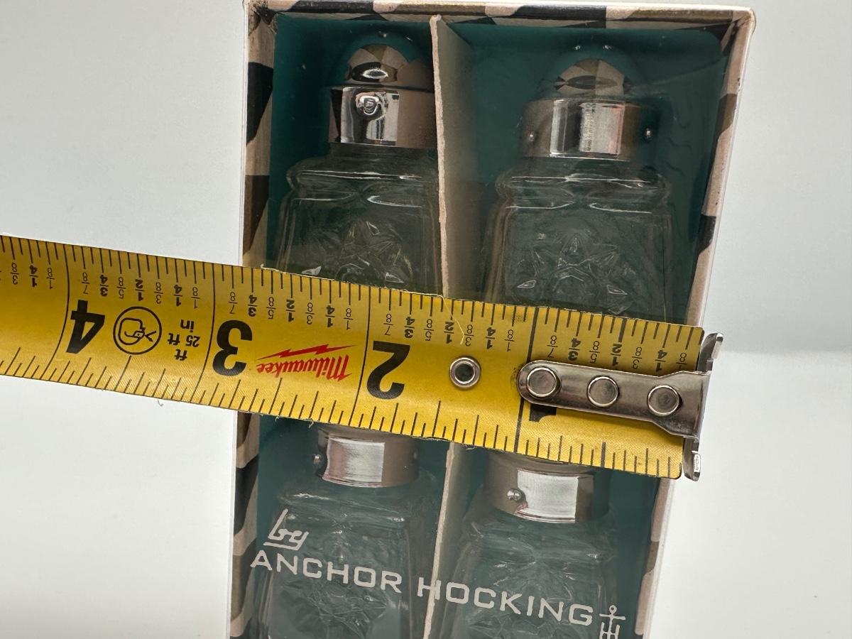 Vintage Anchor Hocking Mini Salt and Pepper Shakers in Original Box