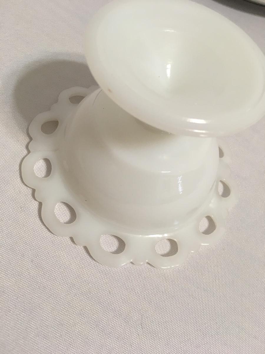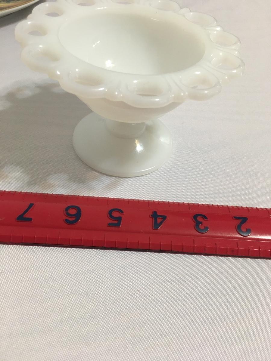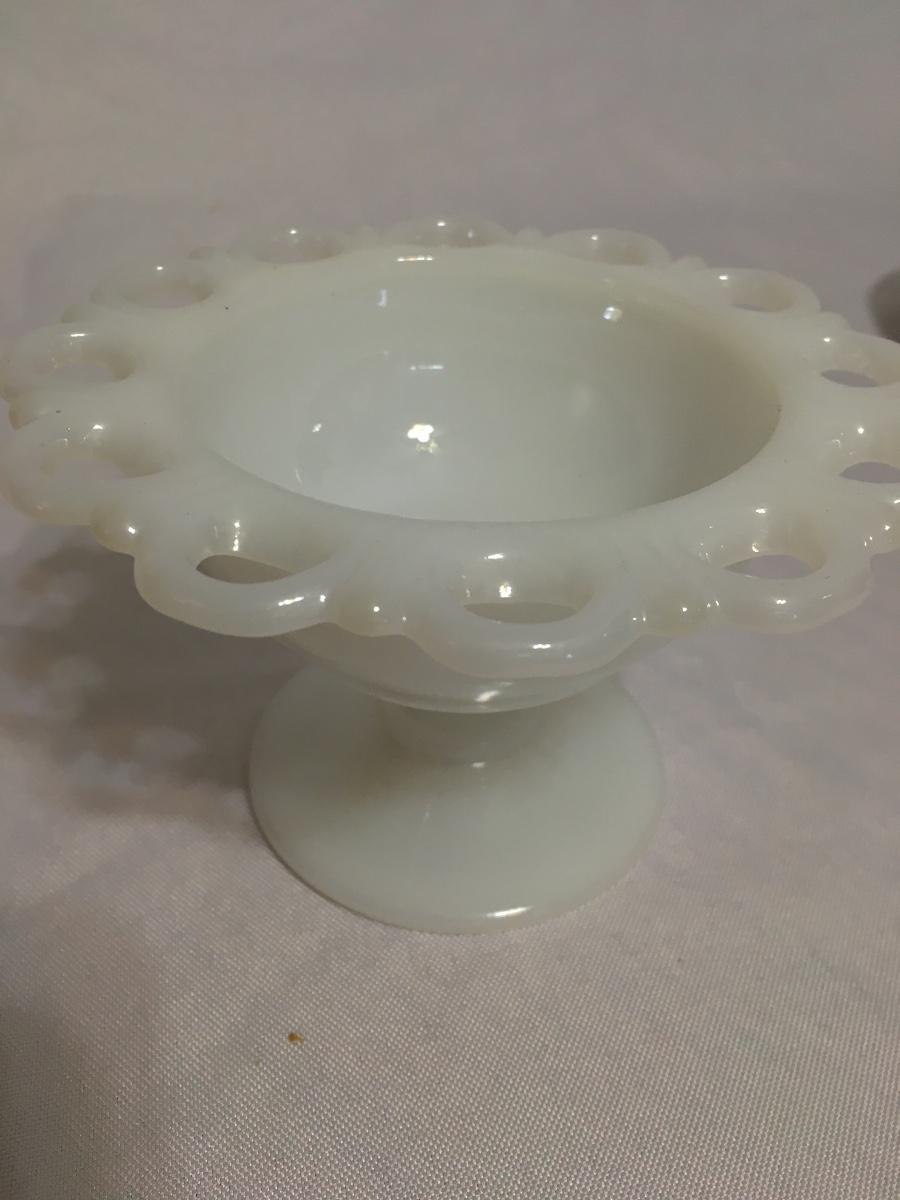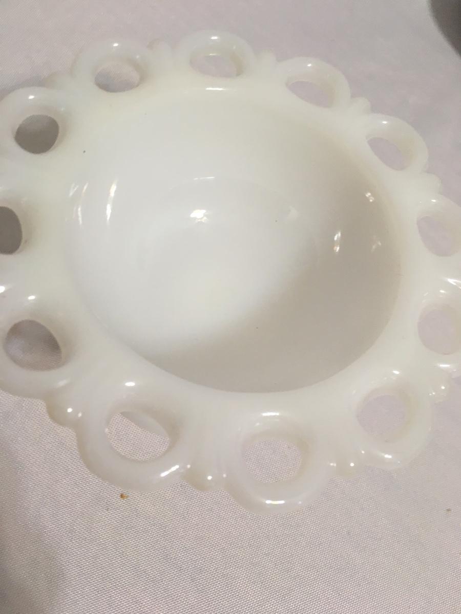 Vintage Anchor Hocking Old Colony Open Lace White Milk Glass Footed Dish
