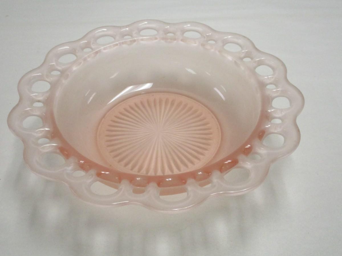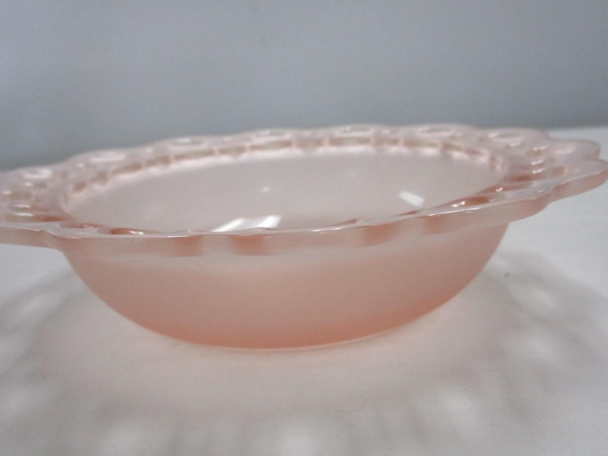 Vintage Anchor Hocking "Old Colony" Open Lace Frosted Pink Depression Glass Bowl