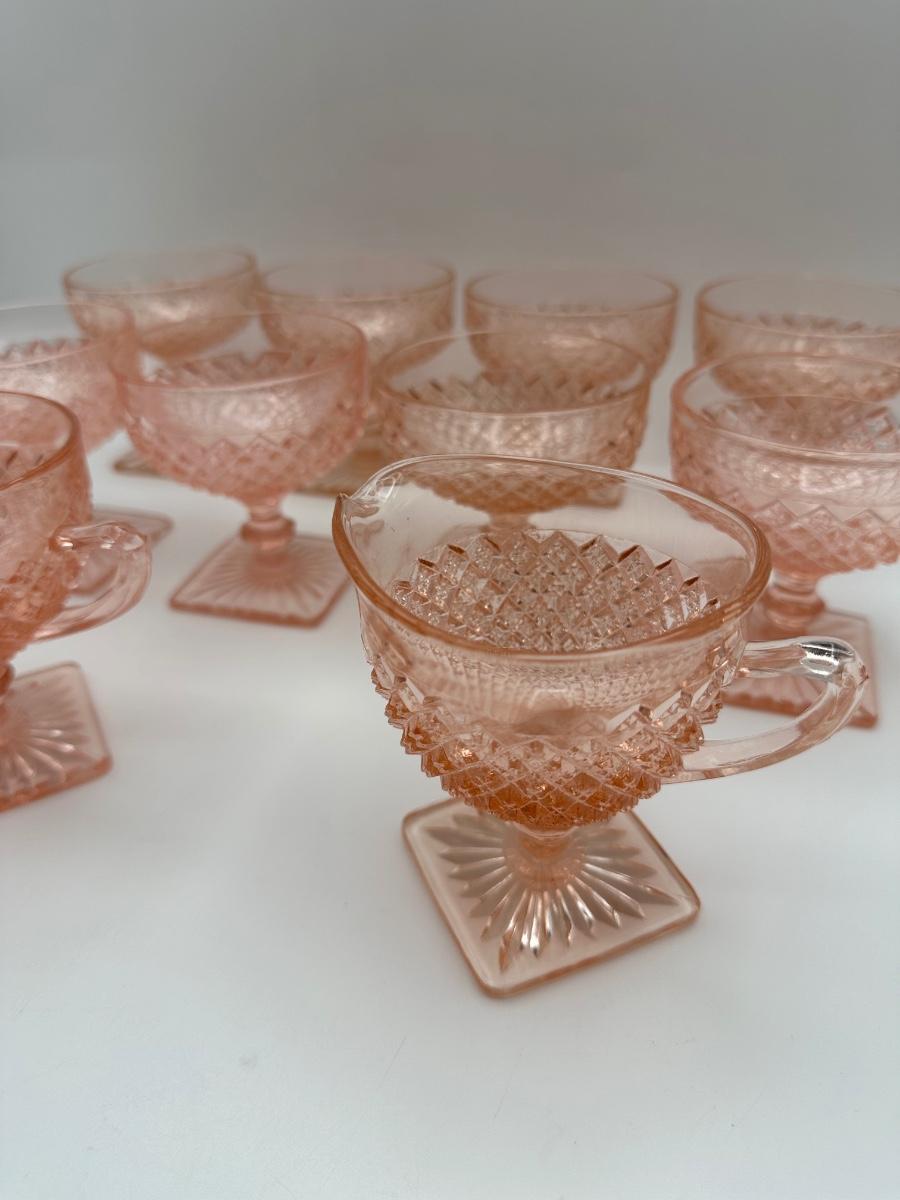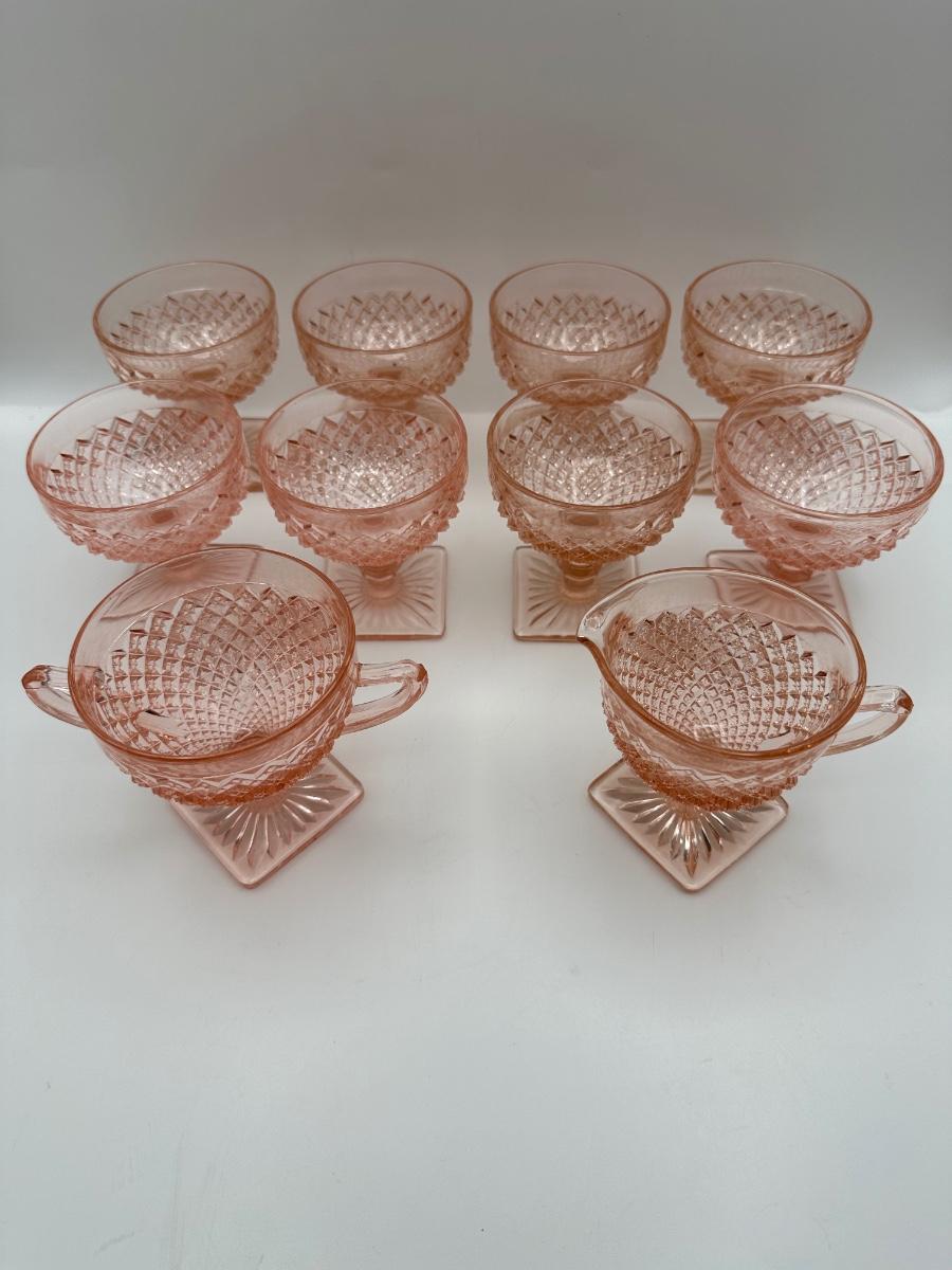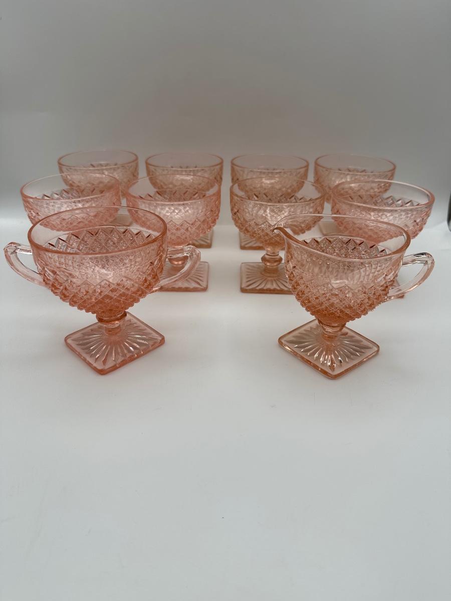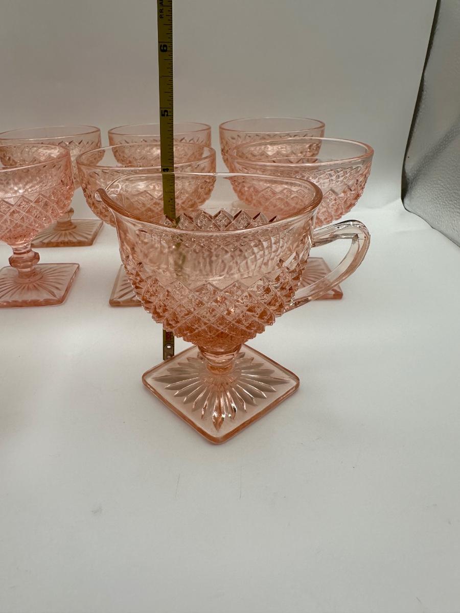 Vintage Pink Depression Glasses, Creamer & Sugar (Diamond Pattern)