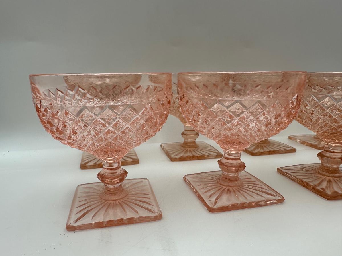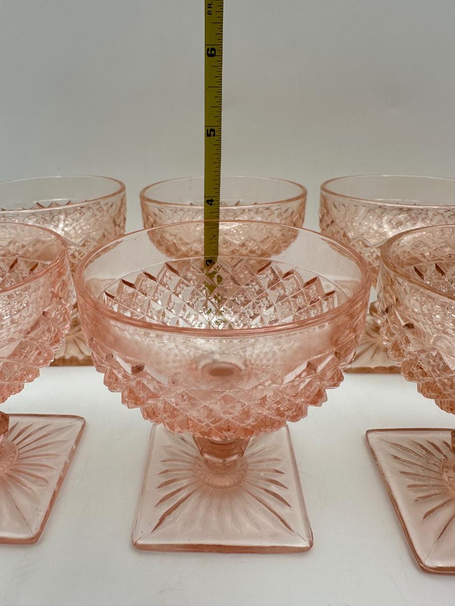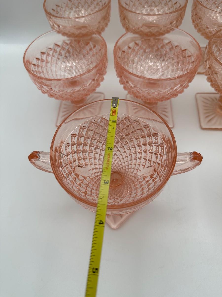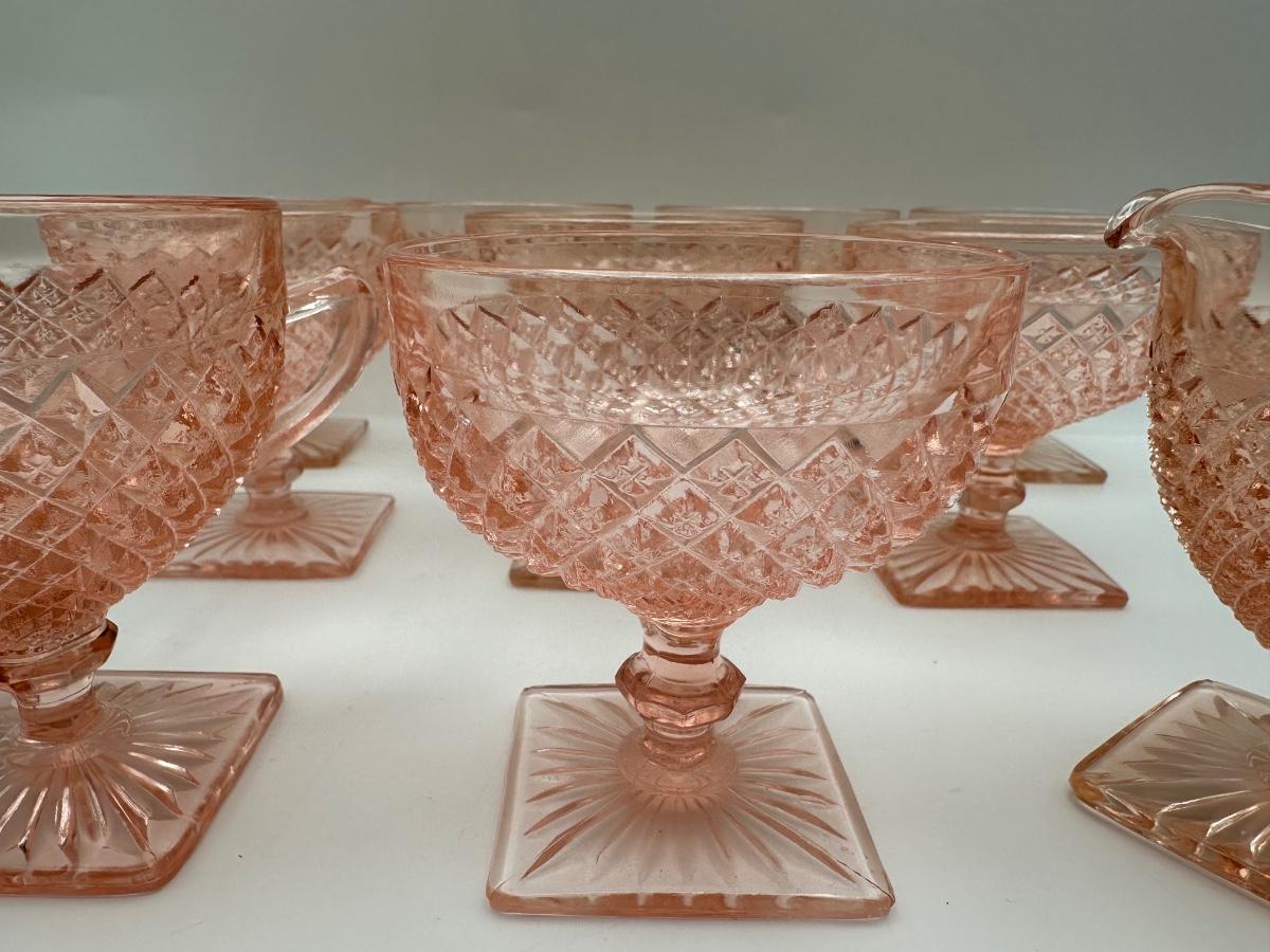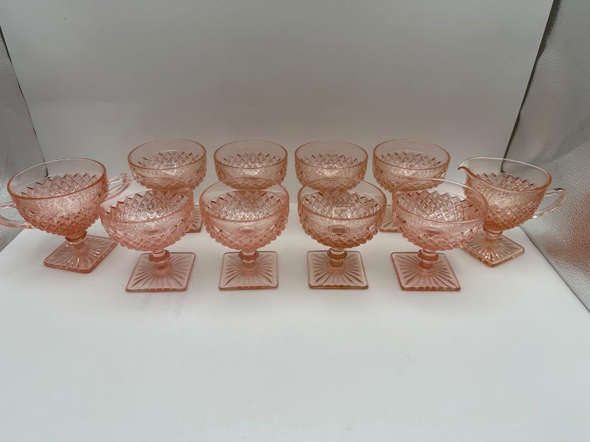 Vintage Pink Depression Glasses, Creamer & Sugar (Diamond Pattern)