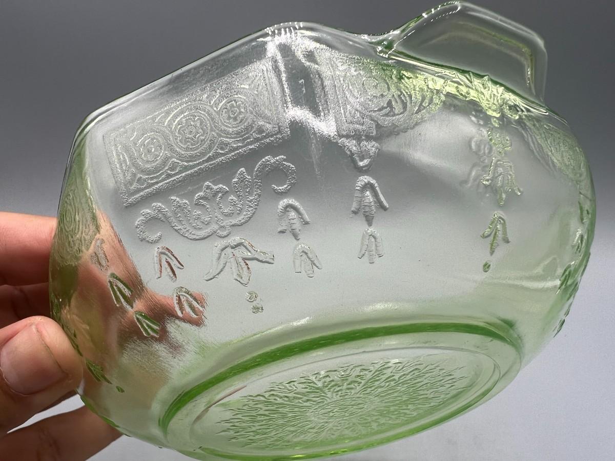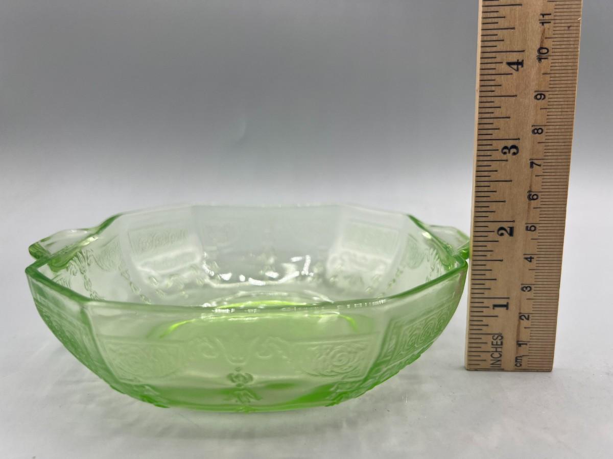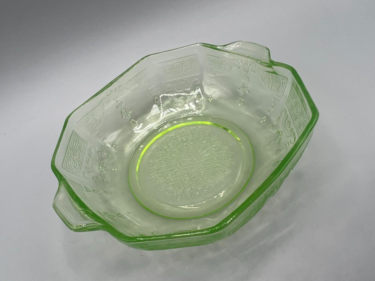 Vintage Anchor Hocking Princess Pattern Green Uranium Glass Oval Bowl