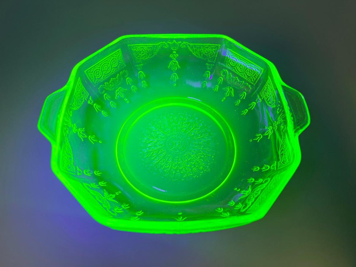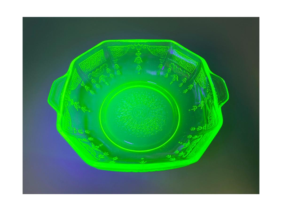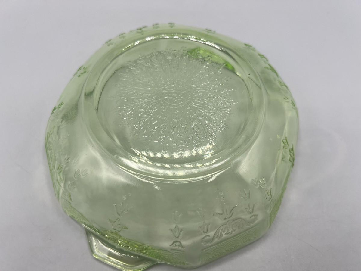 Vintage Anchor Hocking Princess Pattern Green Uranium Glass Oval Bowl
