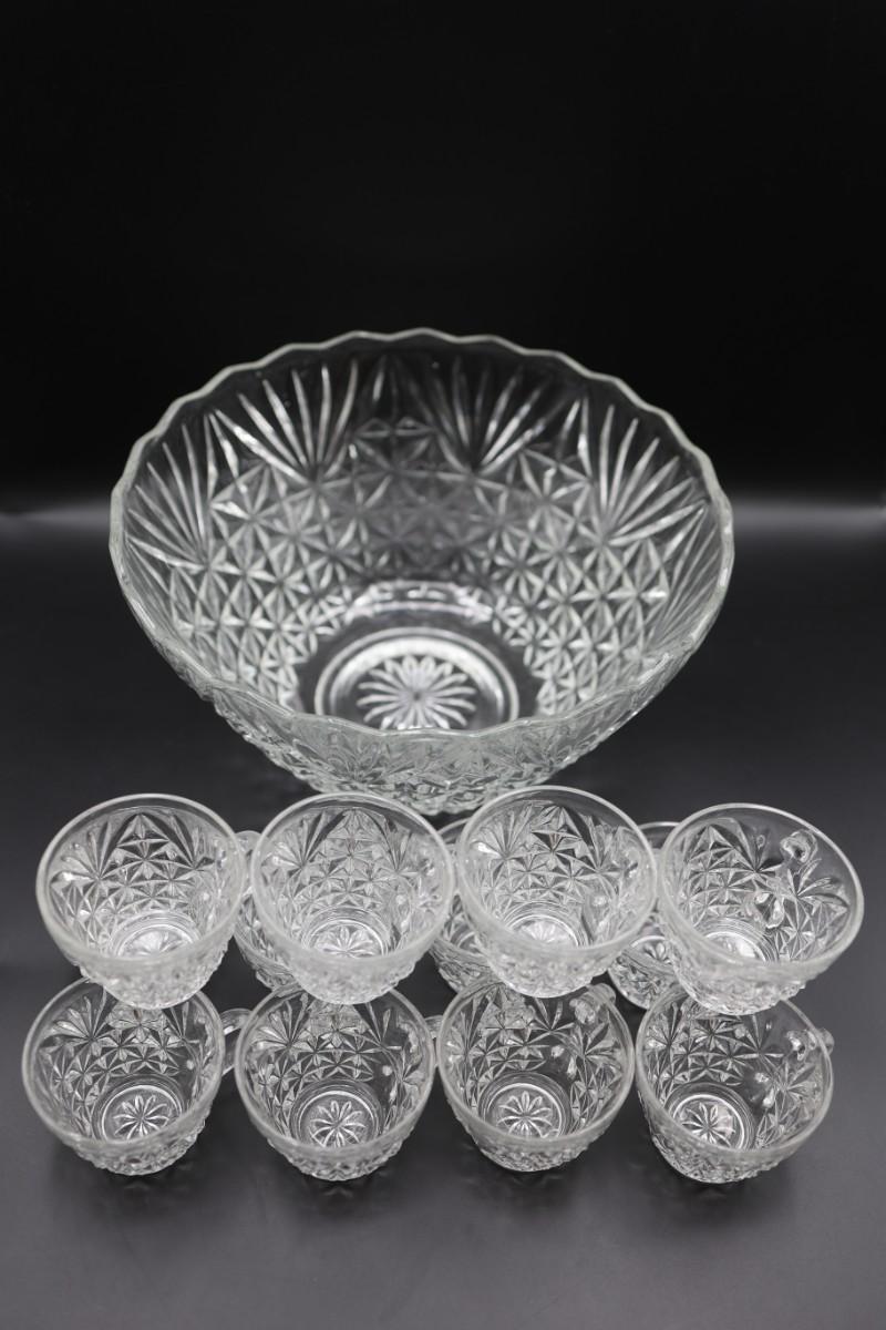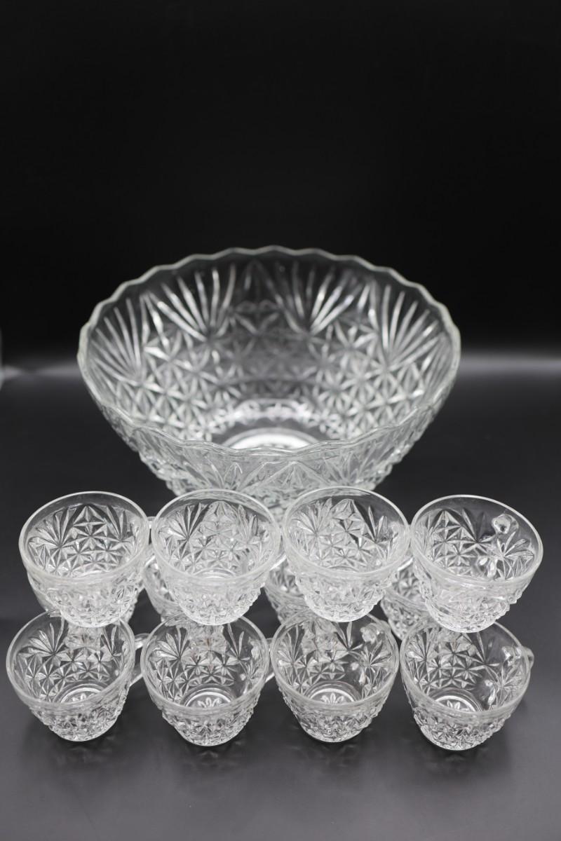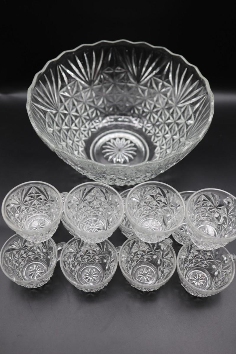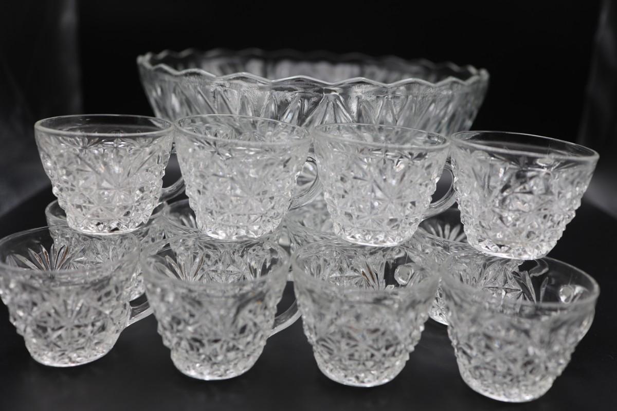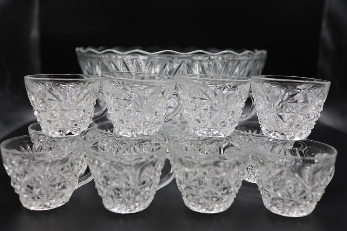Vintage Anchor Hocking Punch Bowl and Twelve (12) Cups