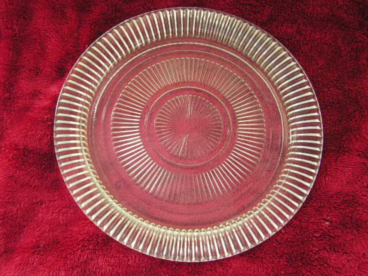 Vintage Anchor Hocking Queen Mary clear glass round 12" serving platter, also known as a “sandwich plate” or “cake plate”. Considered “depression glass” due to it’s production between 1936 & 1949. Excellent condition.