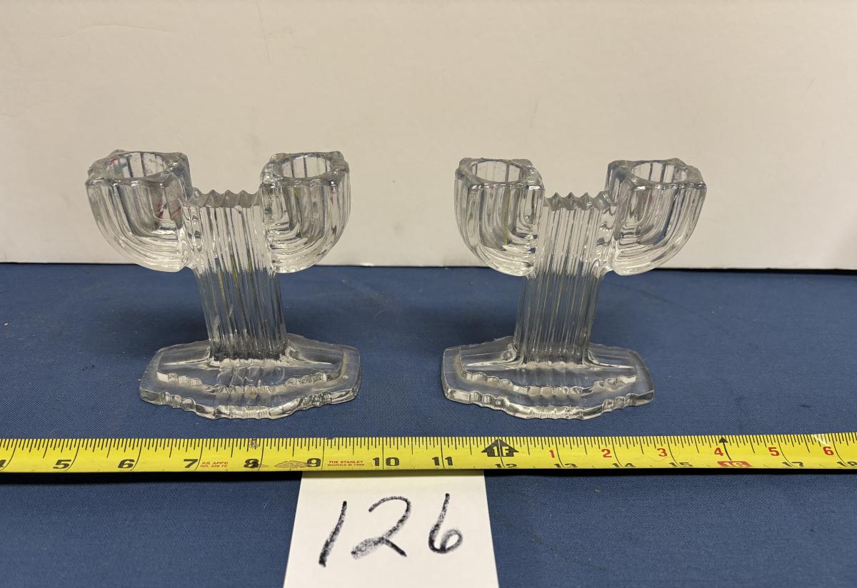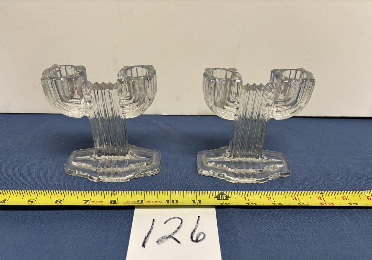 Vintage Anchor Hocking Queen MaryDouble Candlesticks