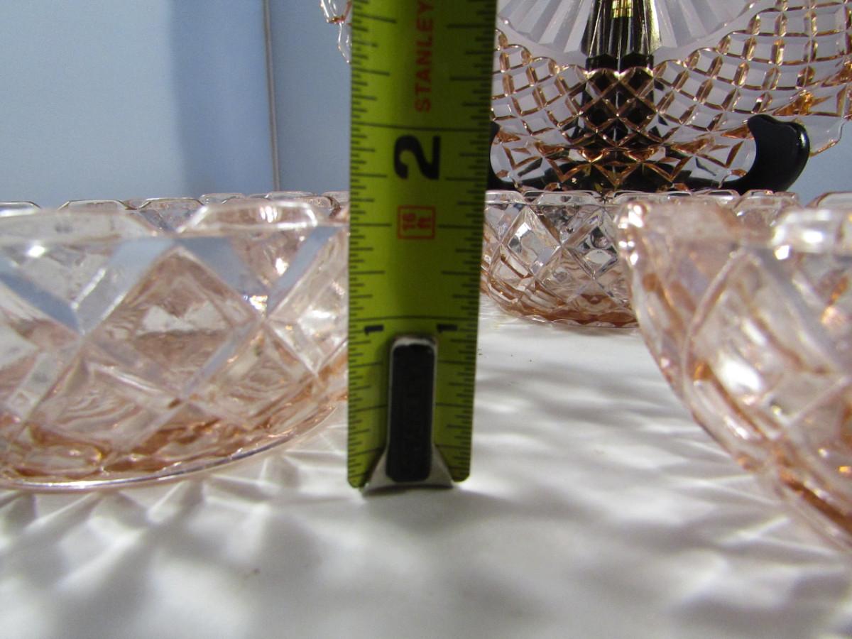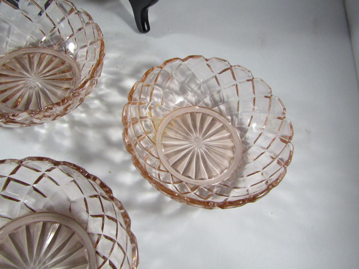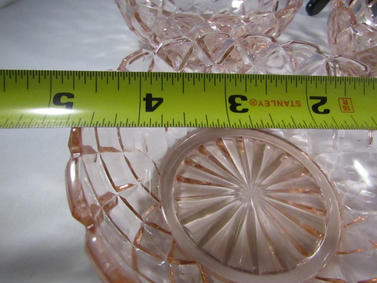 Vintage Anchor Hocking Waterford Waffle Pattern Pink Depression Glass Platter and Five Bowls