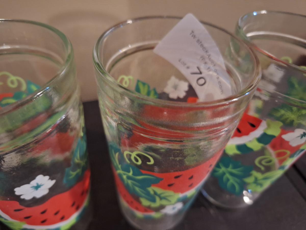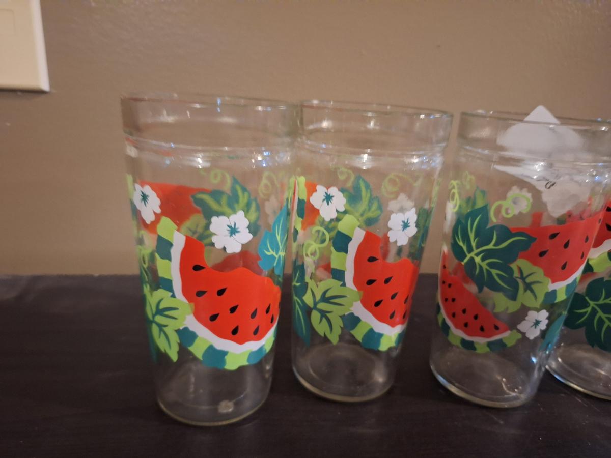 Vintage Anchor Hocking watermelon jelly jar drinking glasse