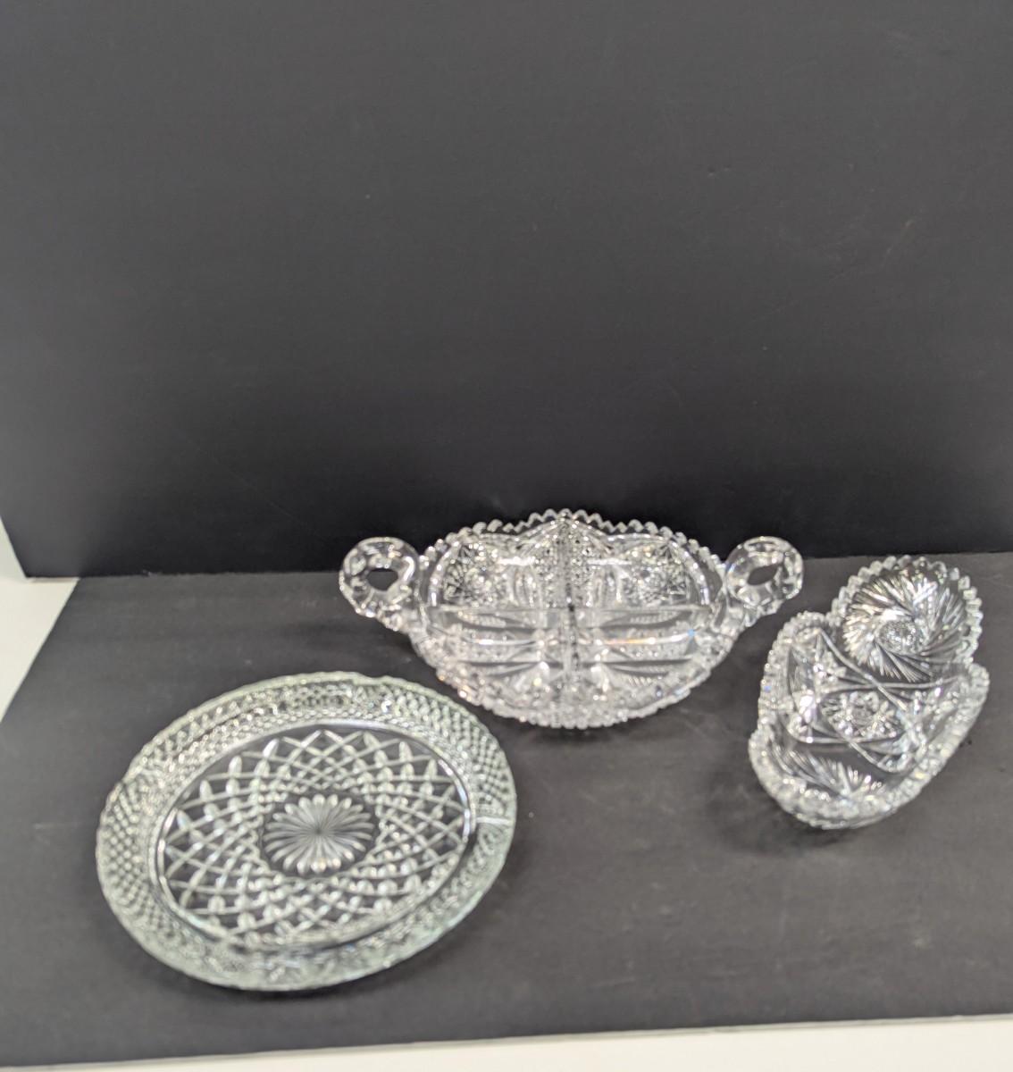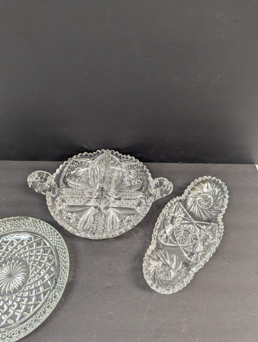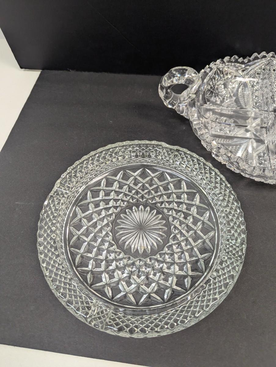 Vintage Anchor Hocking Wexford Ashtray Cut Glass Divided Relish Tray & Celery Dish