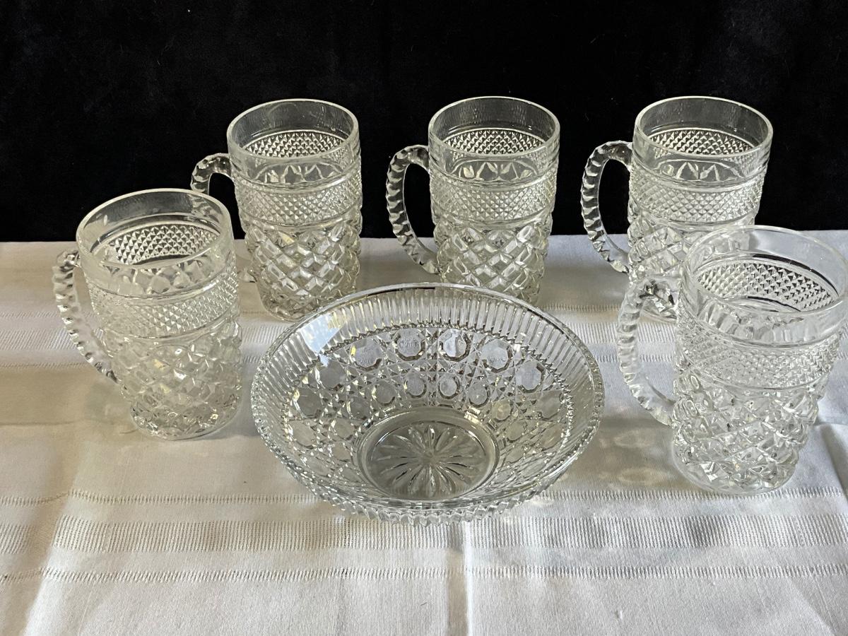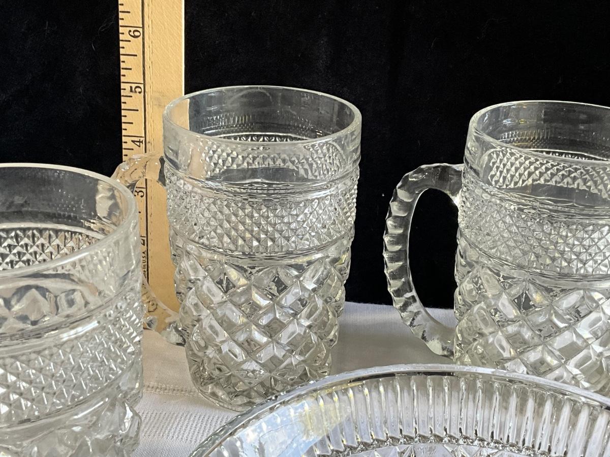 Vintage Anchor Hocking Wexford Glass Mugs, Vintage Glass Bown(Windsor pattern)